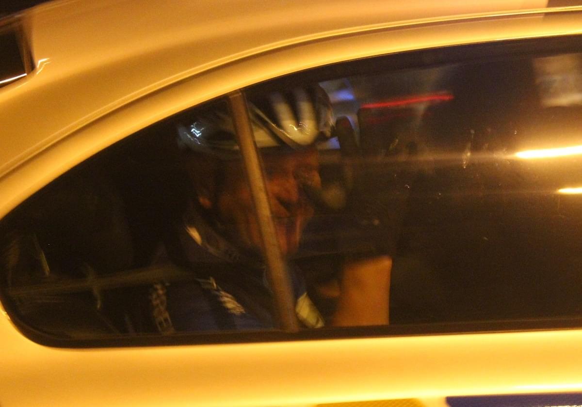 „Myslel jsem, že má infarkt,“ popsal svědek, „spadl z kola jako žok a nebýt přilby, urazil by si hlavu. Podle toho jak se ale pak s policií hádal, byl úplně našrot.“