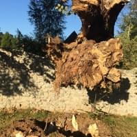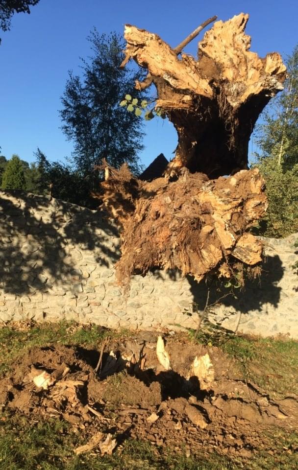 O tom, jakou paseku by strom nadělal mezi lidmi, svědčí naše fotografie zničené stavby i kamenné zdi.