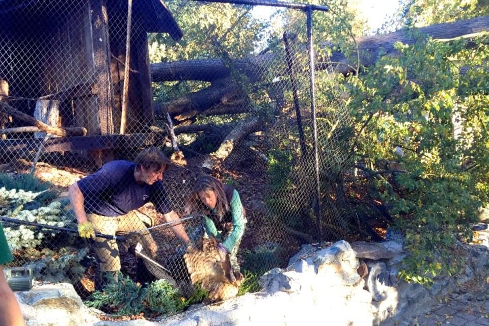 Bohužel strom spadl i mezi zvířata, která právě teď zaměstnanci postupně odchytávají a veterinář kontroluje, zda mimo šoku neutrpěla ještě nějakou újmu.