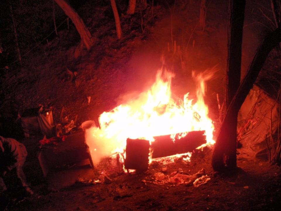 Na místě nyní zasahují strážníci, policisté a hasiči. Vysoký oheň bylo vidět až z Doudlevecké třídy. Jednalo se o tábořiště, které mají bezdomovci pod Fakultní nemocnicí Bory. Na místo jako první dorazili strážníci, na místě nalezli několik bezdomovců a dokonce jednoho, ležícího skoro v ohni. Muž ležel nehnutě a již na něm začínala hořet deka. Strážníci služebním hasicím přístrojem okamžitě zahájili hasení okolo ležícího muže, vyhnali ostatní bezdomovce do bezpečí a přivolali hasiče.