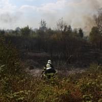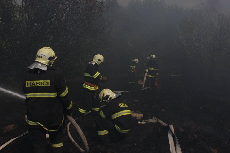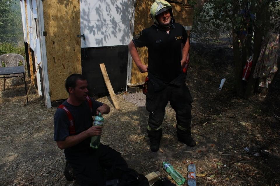 Najednou vše kolem nás potemnělo, prudce se oteplilo a my pochopili, že se otočil vítr. Kolem nás se valí oblaka nedýchatelného kouře a vzduchem létají tisíce jisker. Náhle se také na již uhašeném prostoru všude kolem mě objevují nové ohníčky. Jako laik propadám panice a předpokládám, že zde uhořím, kde je kolega netuším, protože kamsi odešel s vodou. Uvažuji, zda má smysl s mými stopadesáti kily zbytečně prchat a zemřít tak na infarkt nebo raději důstojně zahynout v plamenech a do poslední chvíle, stejně jako radista na Titaniku, informovat čtenáře.