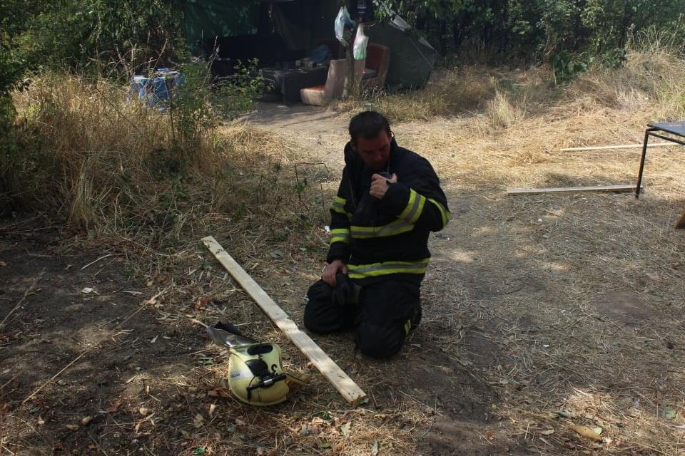 Po příjezdu na místo jsme zjistili, že oheň běží od příbytků bezdomovců, kteří zcela ignorují zákazy rozdělávání ohně a vítr ho žene napříč celou plochou. Desítky hasičů plameny hnaly před sebou a stále napojovaly další a další metry hadic. Zatímco první muži drželi proudnice a směřovali proudy vody na oheň, další stále běhali tam a zpět a přinášeli nové a nové hadice.