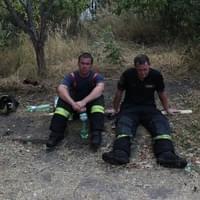 Náhle se, jako mávnutím kouzelného proutku, všude kolem rozjasnilo, kouř zmizel a bylo vidět jasnou a čistou oblohu. Hasiči snímali přilby, sedali si kam mohli a plivali černé sliny. Sundavali těžké kabáty, objevovala se totálně potem promočená trička a muži do sebe hltavě lili vodu z petlahví, kterou spojky přinášely po desítkách z aut.