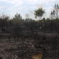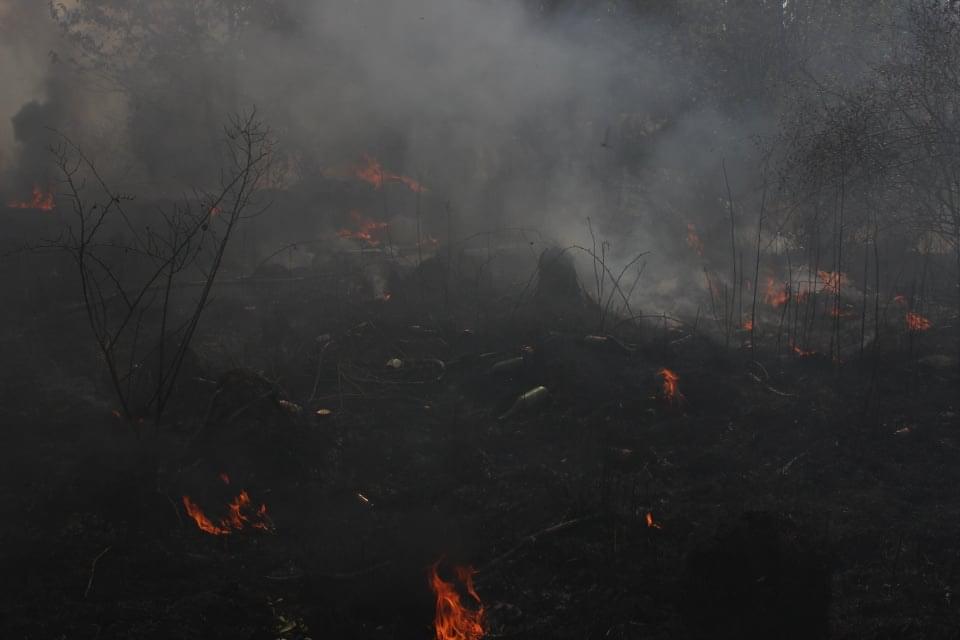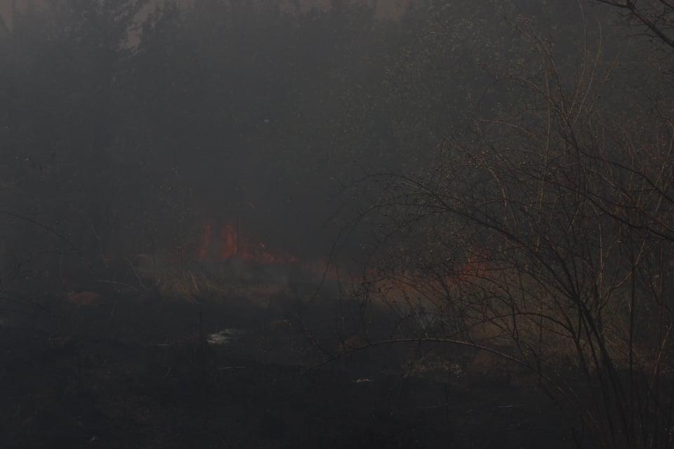 Postoupili jsme až do místa, které nejvíce připomínalo Hirošimu. Všude okolo jen spálená pustina a ve stovkách míst ze země stoupají sloupce kouře. První řada hasičů je již daleko před námi a postupují stále vpřed.