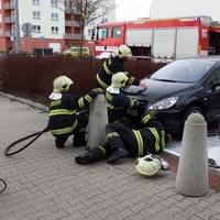 Na parkovišti se začal valit dým zpod kapoty automobilu Peugeot. Hasiči prolili motor pěnou a nyní čekají na místě, kontrolují za pomoci teromkamery, jestli neobjeví další ohnisko požáru.