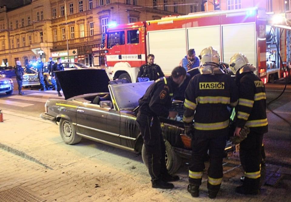K požáru došlo dnes po deváté hodině večer těsně za křižovatkou Klatovská x Americká. Řidič tohoto krásného veterána jel ve směru z Borů do centra, když jeho vůz začal mít problémy a přestal jet.