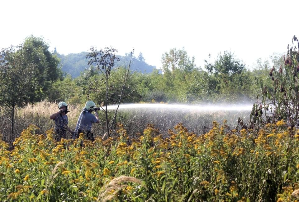 Horko, suchý porost a sílící vítr bohužel oheň šířil dál všemi směry, takže po příjezdu hasičů již hořely desítky metrů čtverečních.