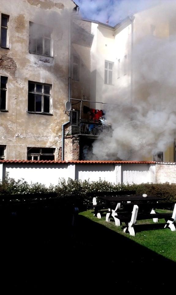 Na místě již proběhla evakuace zbylých osob z domu a hasiči vyvedli minimálně dalších sedm osob.