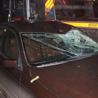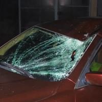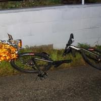 O brutální síle nárazu svědčí nejen na kusy rozlámané horské kolo, ale i pohled na zdemolovaný vůz.