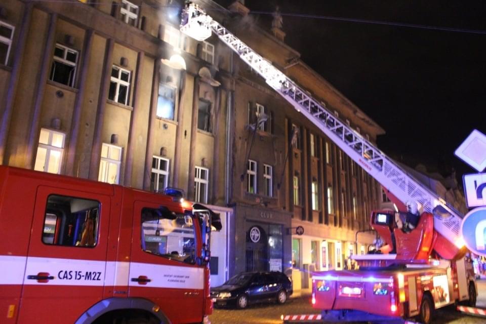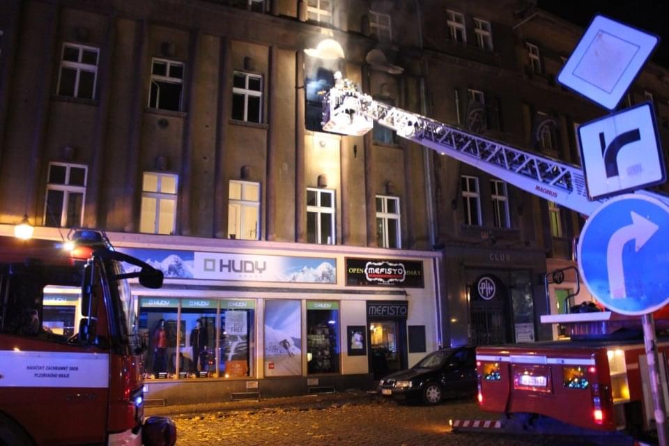 "Včera v 20:37 hodin vyhlásilo operační středisko poplach plzeňským jednotkám ze Středu, Košutky a dobrovolným hasičům ze Skvrňan a vyslalo je do Goethovy ulice v centru města k požáru bytu v 2. patře. Při příjezdu jednotek z okna šlehaly mohutné plameny.