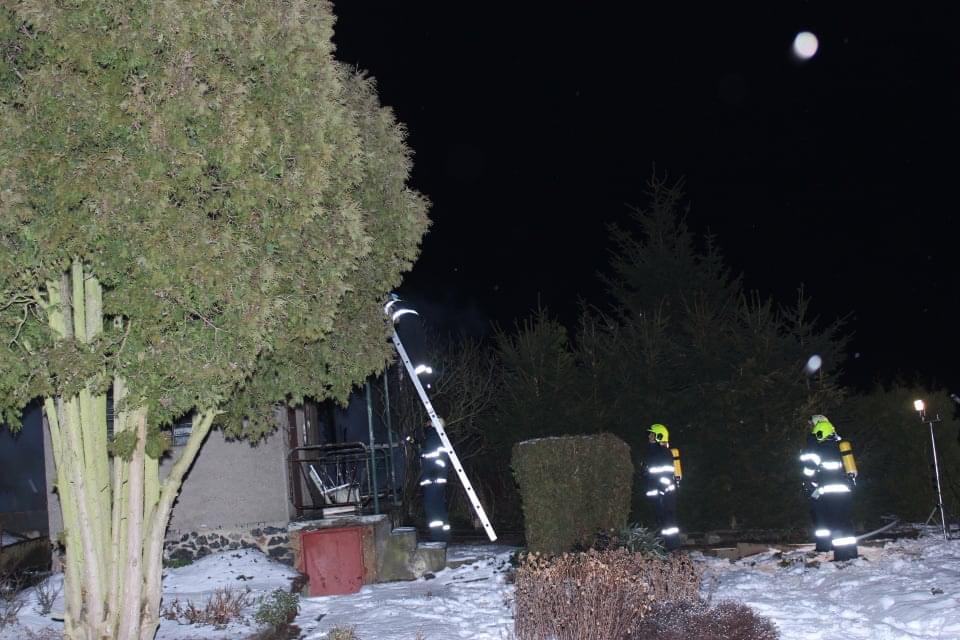 I po našem příjezdu ještě z budovy šlehaly vysoké plameny a oheň nakonec obě budovy zcela zničil. Hasiči požár zlikvidovali a zabránili rozšíření na další chatky v okolí.