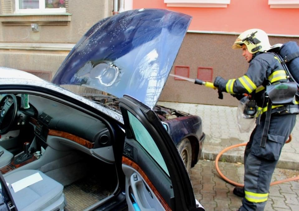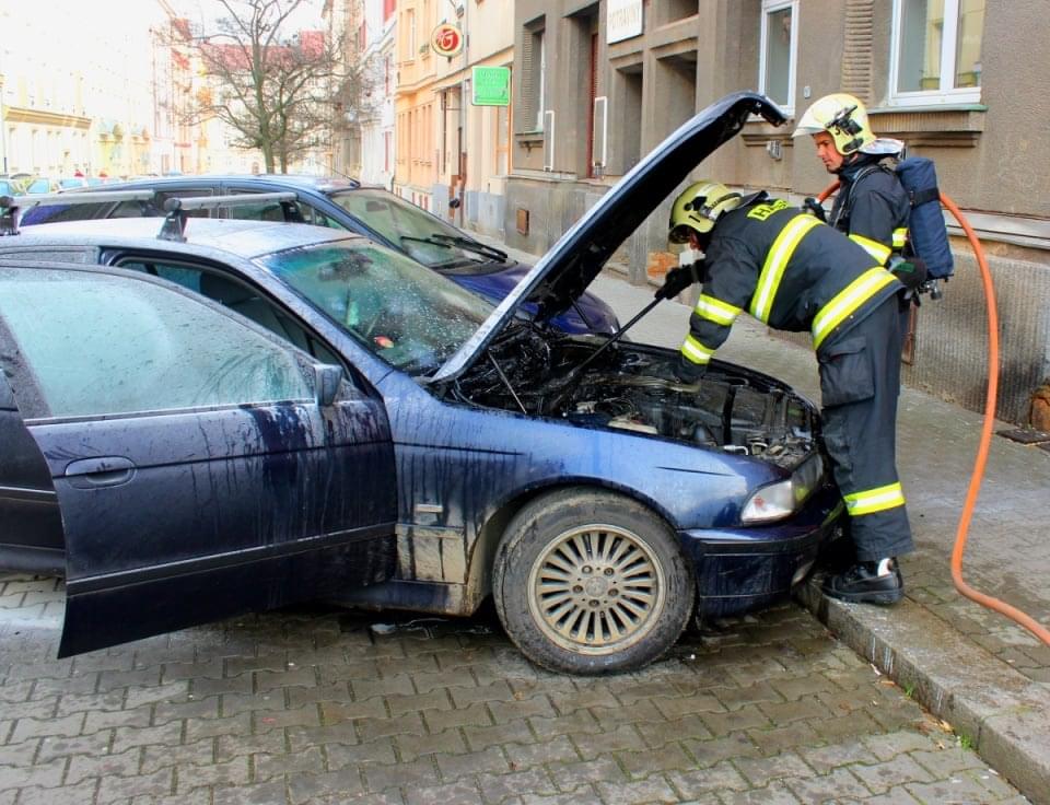 Majitel osobního vozu BMW dorazil do Vrchlického ulice na Borech a jen o pár minut později z jeho auta vyrazily plameny. Pravděpodobně šlo o závadu na elektroinstalaci.