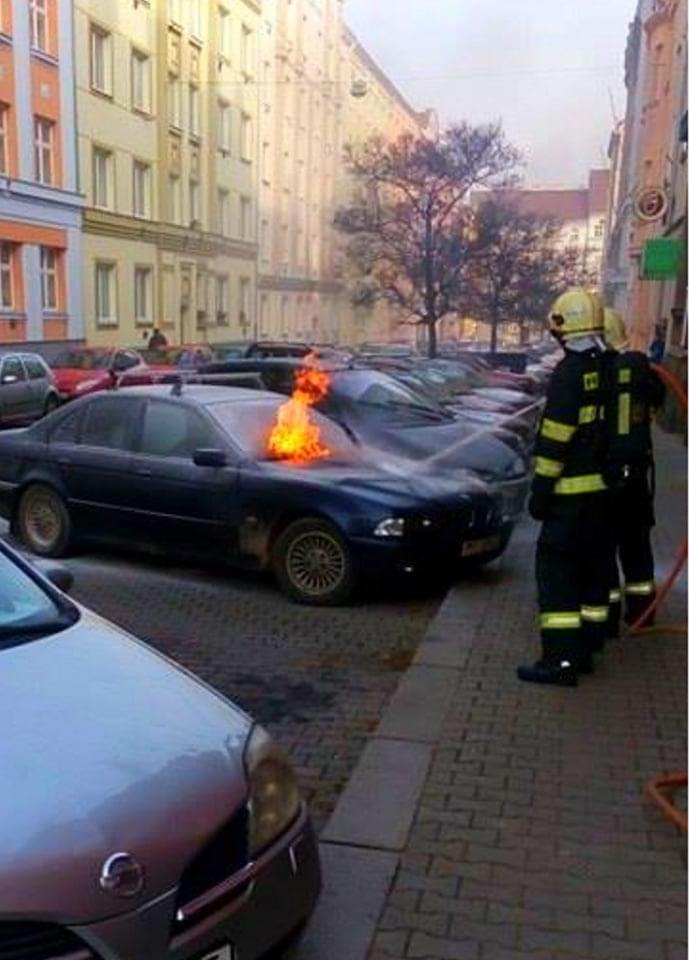 Lidé oznamovali, že z prostoru motoru vyrazil plamen. Jen opravdu velice rychlý příjezd hasičů zabránil rozšíření požáru a tedy kompletnímu zničení vozu a možná i dalších vedle zaparkovaných.