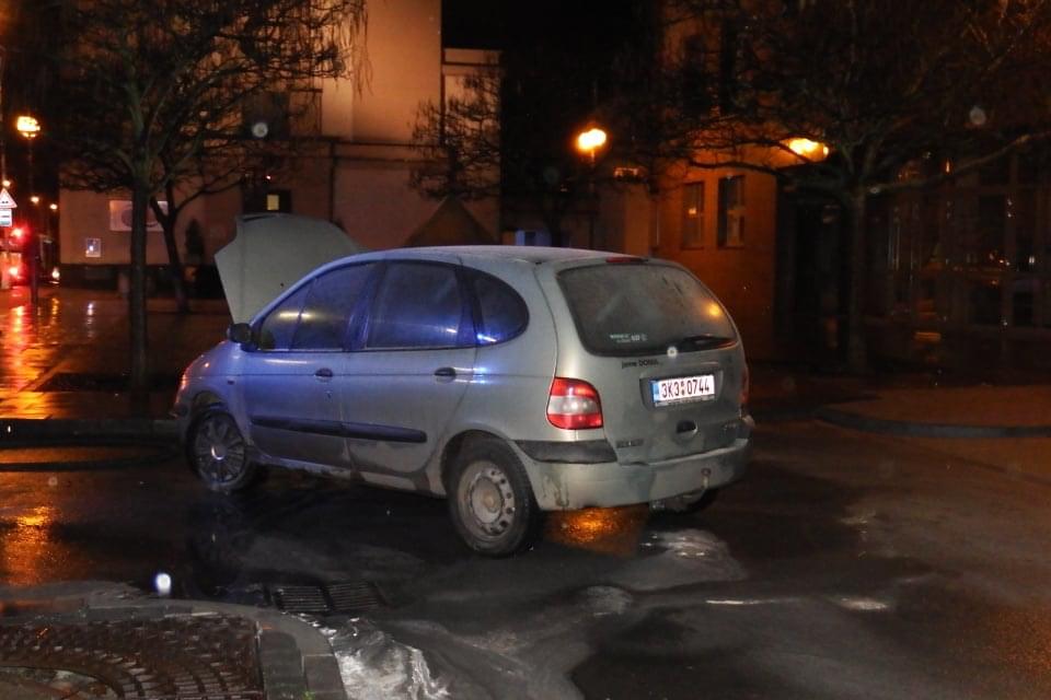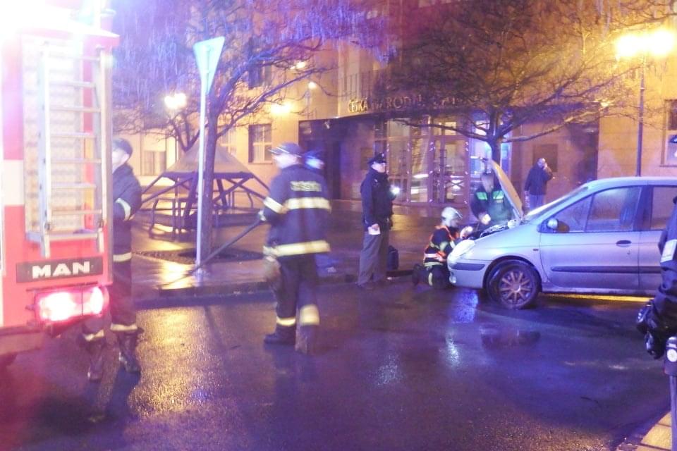 Jen o třicet minut později volal vyděšený řidič, že mu náhle začalo hořet auto na Husově třídě před Českou národní bankou. Na místě prakticky během několika minut zasáhli hasiči a vozidlo uhasili. Tato událost se naštěstí obešla bez zranění.