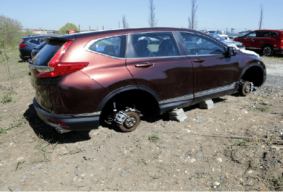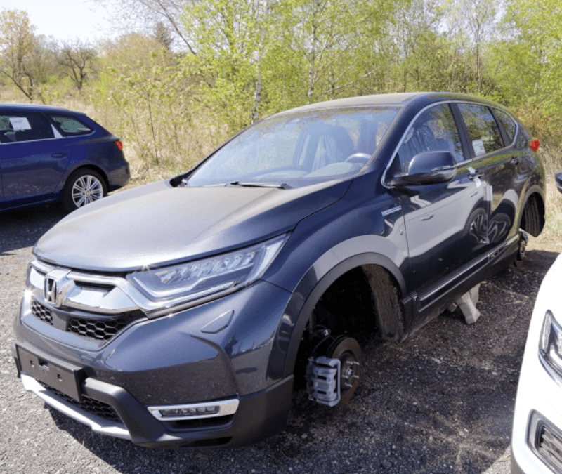 Zloděj zde ze dvou zcela nových vozidel značky Honda nejen, že odmontoval všechna kola, ale počínal si při tom natolik nešetrně, že oba vozy z cihel, kterými je podložil spadly a došlo k jejich poškození.