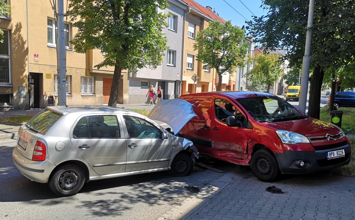 Podle informací z místa došlo k nehodě tak, že řidičce Škody Fabia jedoucí směrem od centra nedala přednost řidička protijedoucího vozu Citroen, která odbočovala vlevo, aby zaparkovala. Náraz Citroen odhodil částečně na chodník a sloup veřejného osvětlení.