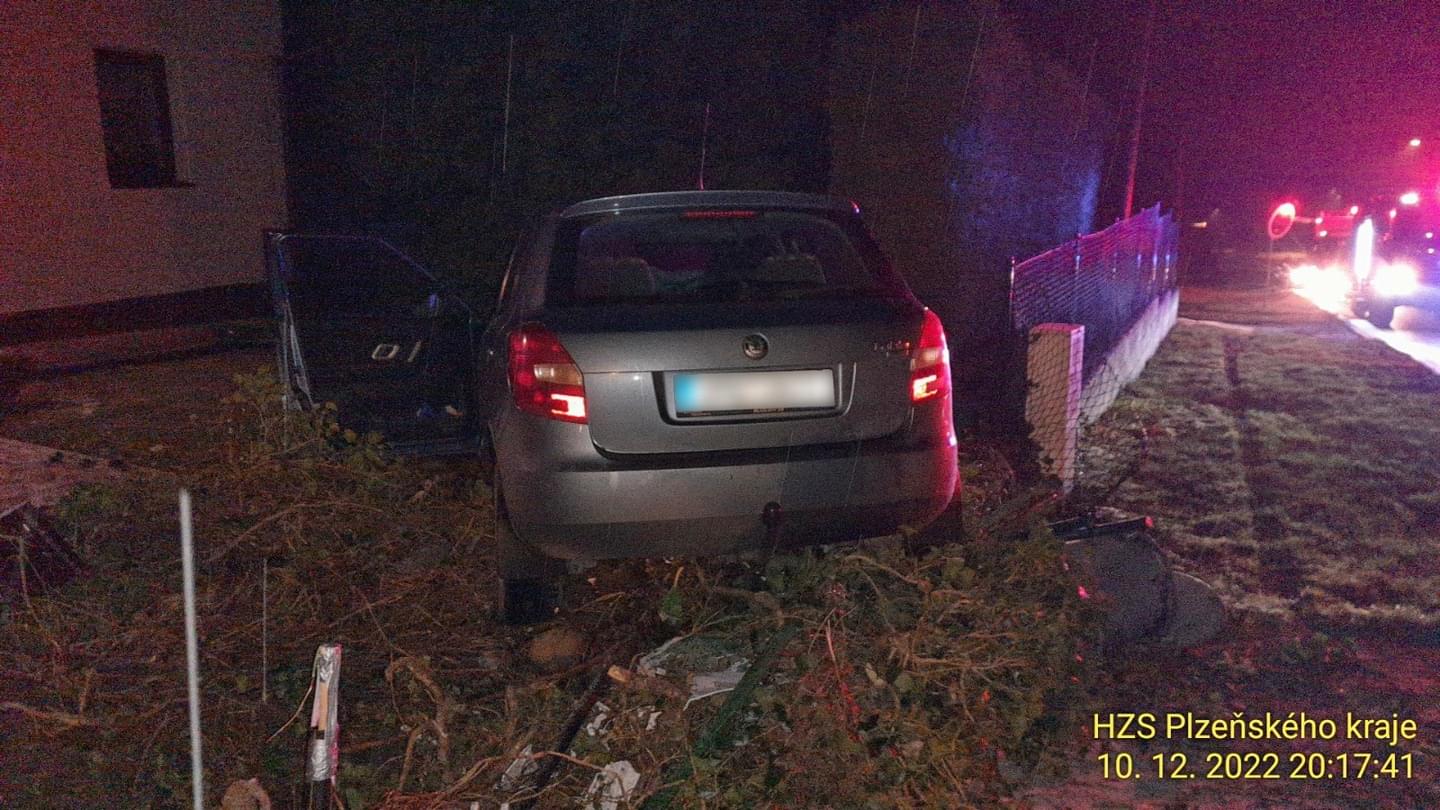 V sobotu 10. prosince před osmou hodinou večer došlo v Hluboké na Domažlicku k dopravní nehodě, při které osobní vůz po vyjetí ze silnice čelně narazil do plotu a plynového sloupku.
