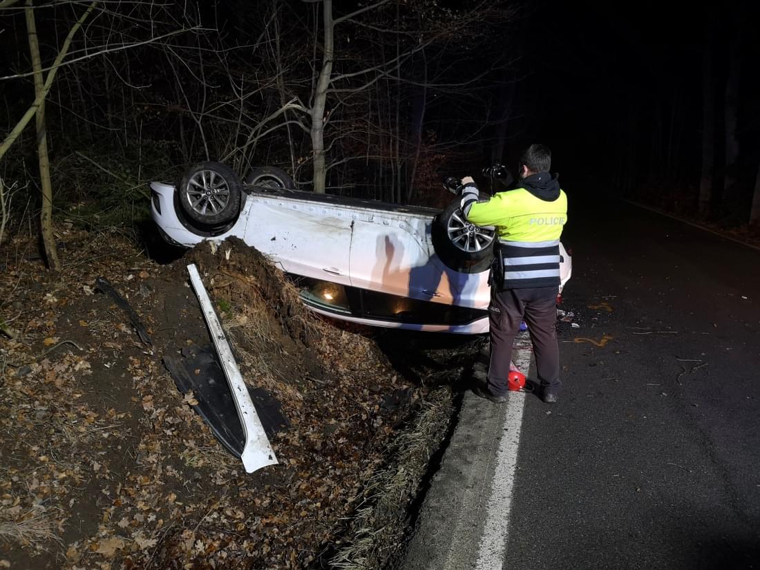 Policisté řidiče podrobili dechové zkoušce na přítomnost alkoholu, která ukázala 0,34 promile a nehodou se stále ještě zabývají.