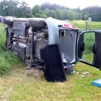 Dnes před pátou hodinou odpoledne došlo na silnici 20 za Losinou k dopravní nehodě, po které osobní automobil vyletěl ze silnice, doslova přeletěl příkop a několik desítek metrů roloval polem, kde nakonec skončil na boku. Podle všeho naštěstí řidič neutrpěl vážnější zranění, z vozidla se dostal sám a v nemocnici skončil pouze na pozorování.