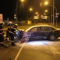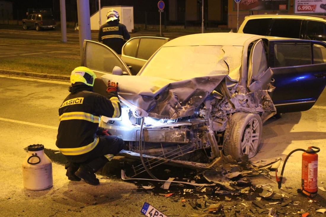 Osobní vozidlo značky Škoda Superb jedoucí ve směru z centra narazilo ve veliké rychlosti do