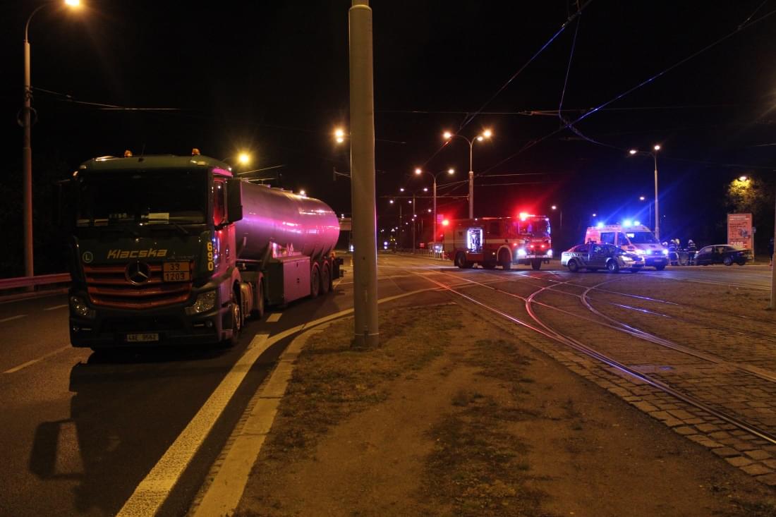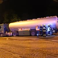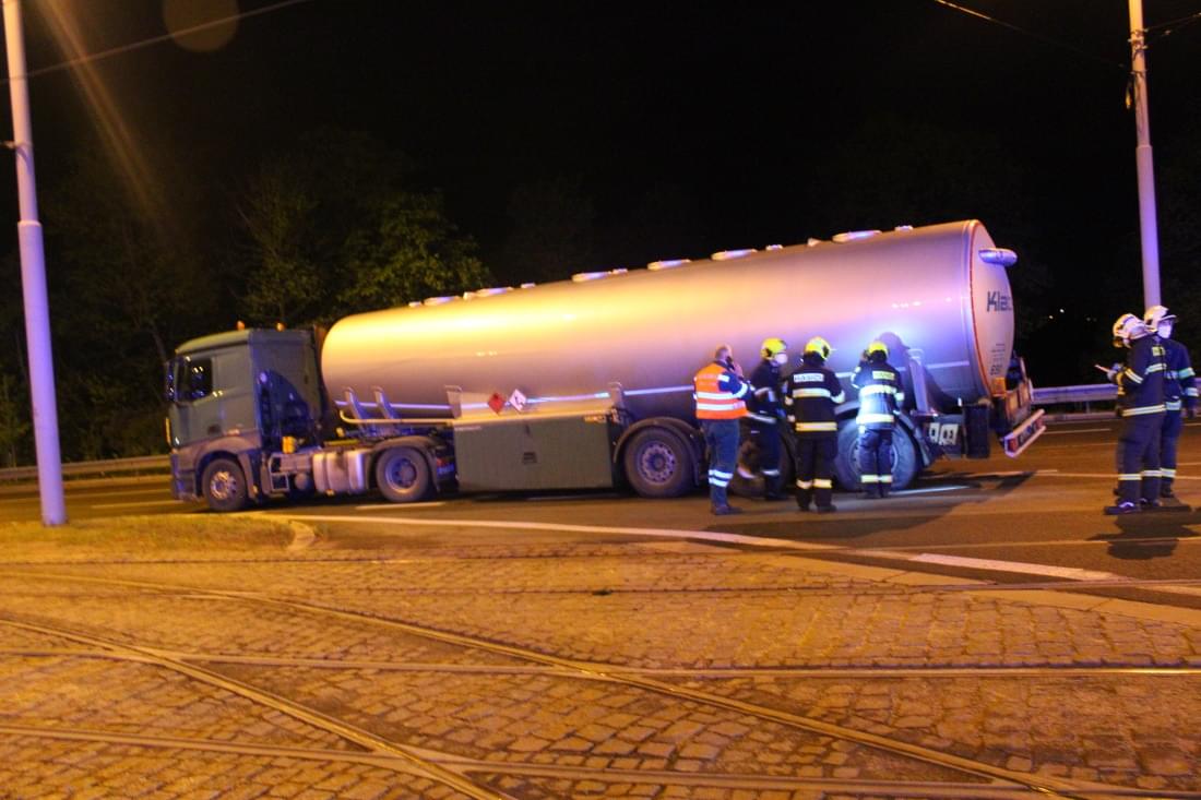kamionu Mercedes s cisternou firmy Klacska, který přepravoval desítky tisíc litrů nafty a benzínu, a odbočoval z Lidické vlevo.