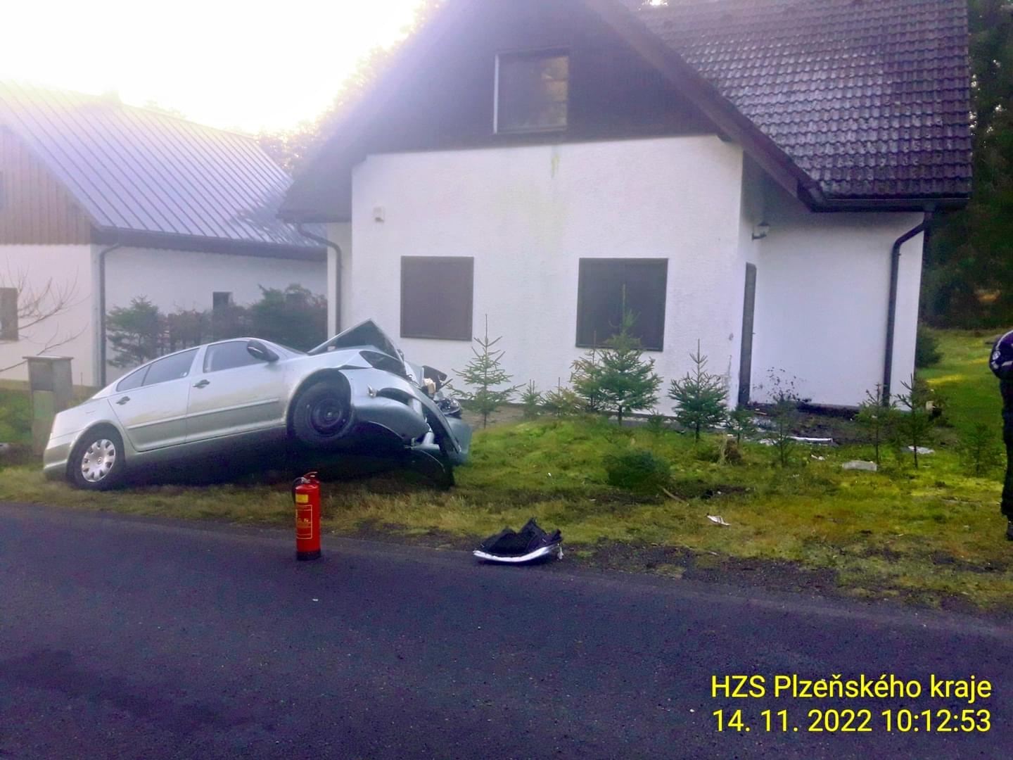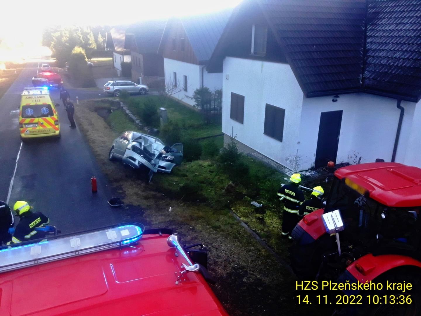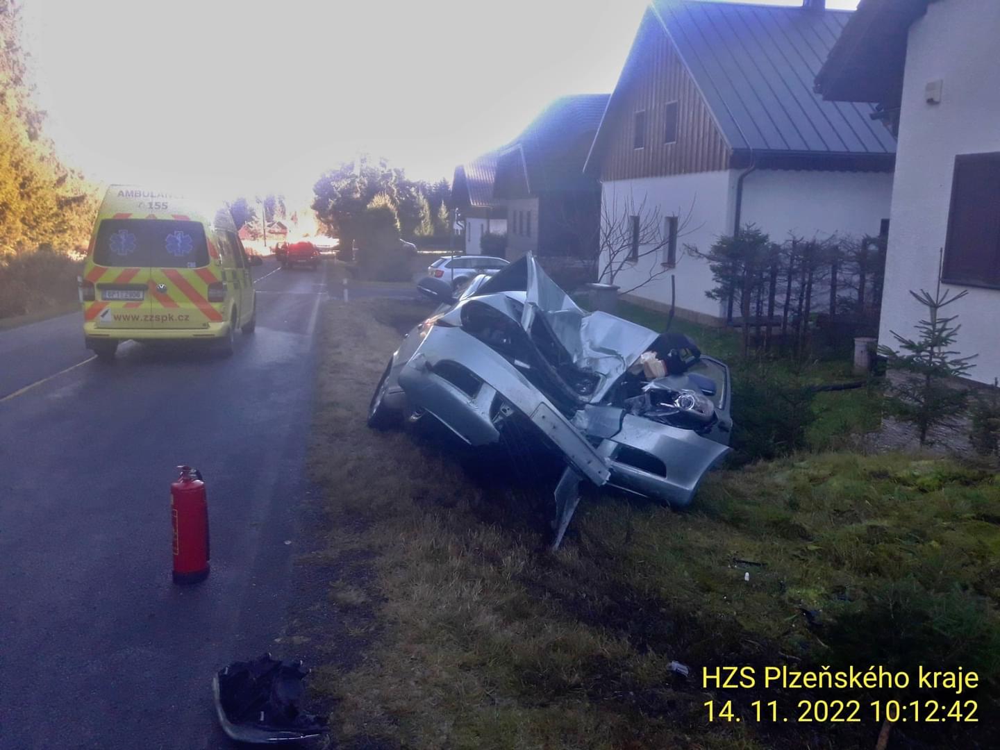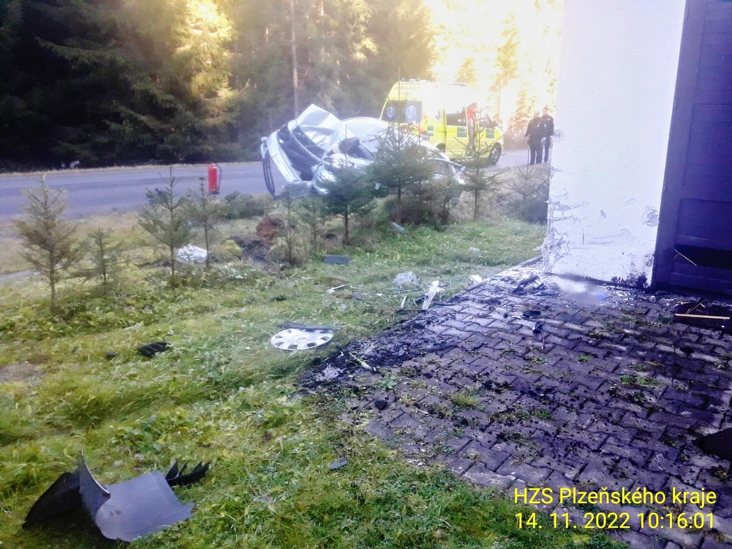 K nehodě vyjely všechny záchranné složky, hasiči zajistili místo nehody a provedli protipožární opatření, zatímco záchranáři si do péče převzali jednu zraněnou osobu. "Muž narozený v roce 1944 byl s lehčími zraněními transportován do nemocnice v Klatovech," uvedla tisková mluvčí záchranářů.