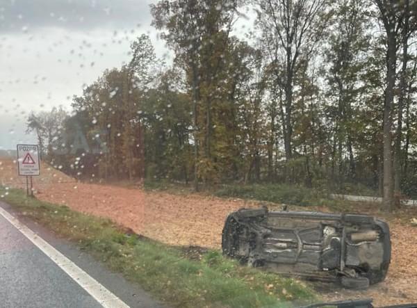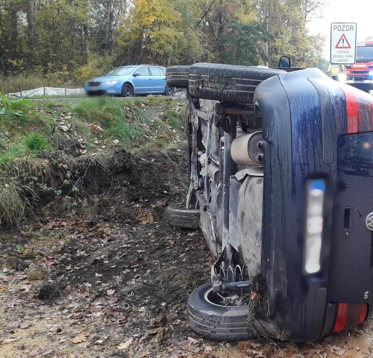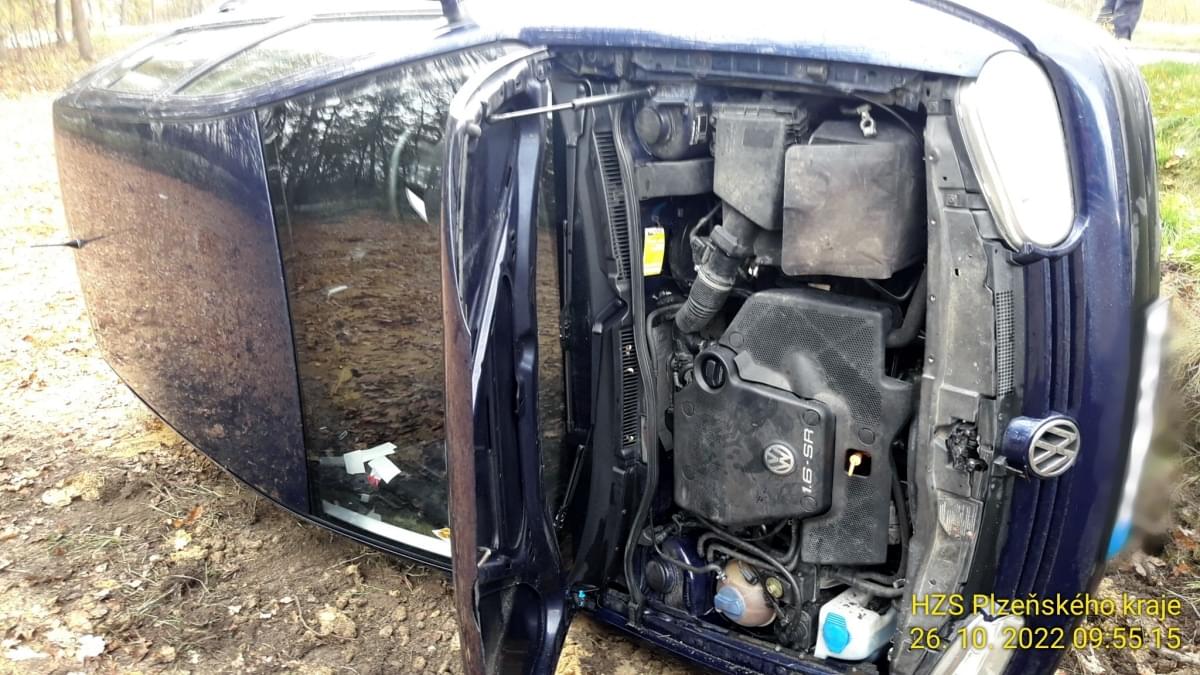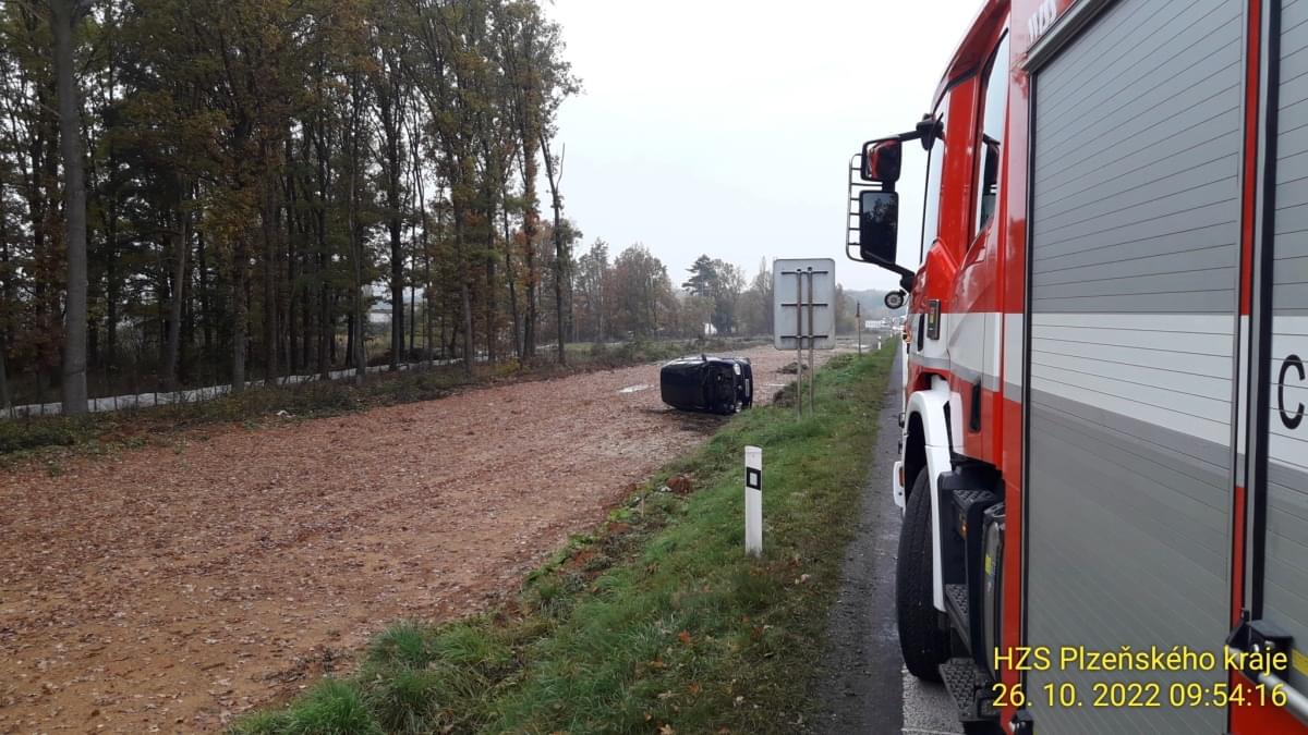 Dnes před půl desátou dopoledne došlo na hlavním tahu z Plzně na Klatovy u Vysoké k dopravní nehodě, při které osobní vůz Volkswagen vyjel ze silnice a převrátil se na bok.