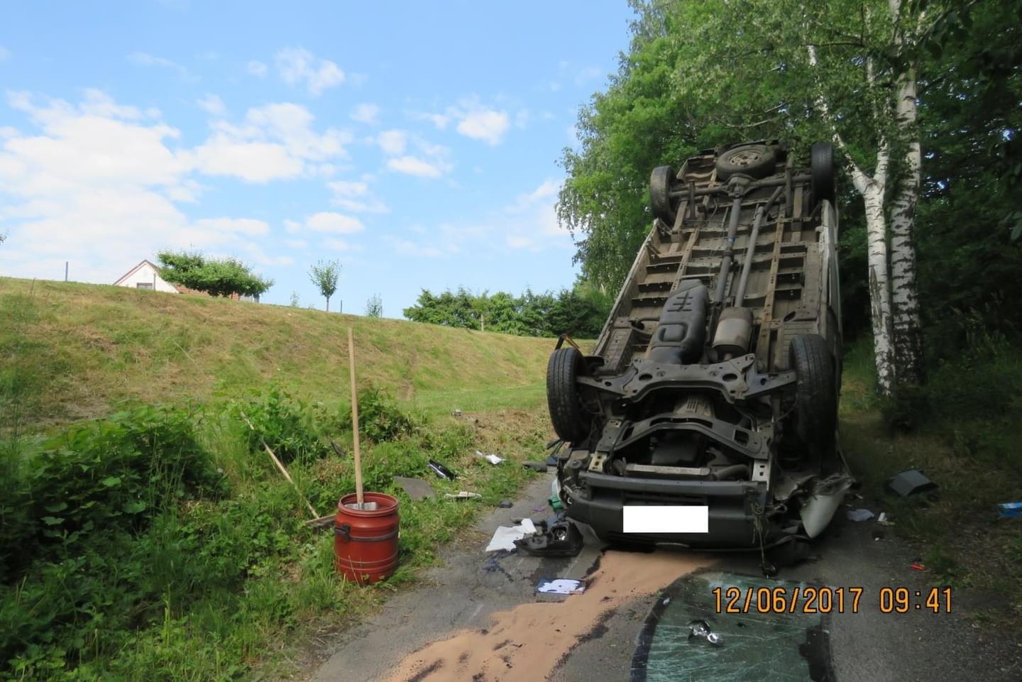 „S vozidlem pokračovala v jízdě přes pozemky, sjela z prudkého svahu, kde se dole vozidlo převrátilo a zůstalo ležet na střeše. Při dopravní nehodě utrpěla dvacetiletá řidička lehké zranění. Požití alkoholických nápojů před jízdou u ní vyloučili policisté dechovou zkouškou,“ popsala nehodu tisková mluvčí policie.