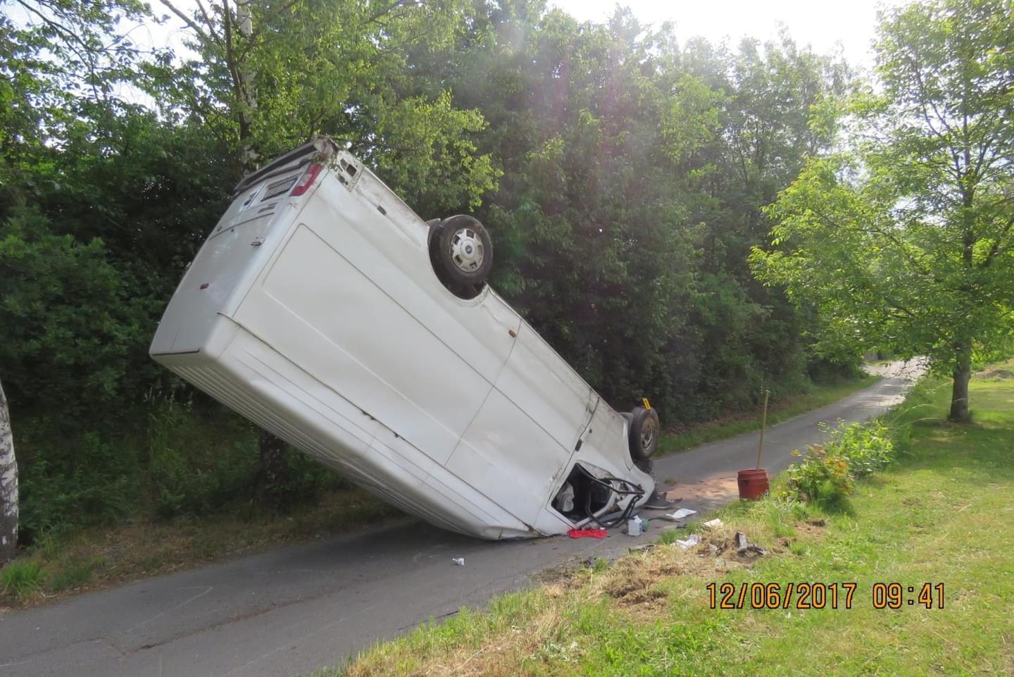 K závažné nehodě vyjížděli policisté v obci Ohůčov, ke které došlo v pondělí 12. června v 08.30 hodin na silnici I. třídy č. 26. Vůz zde zůstal ležet na střeše opravdu velmi zajímavým způsobem poté, co řidička při řízení dodávky značky Ford Transit ve směru od obce Staňkov na obec Holýšov najela s vozidlem na pravou krajnici, sjela do pravého silničního příkopu a zde postupně narazila do svislé dopravní značky a pak i do oplocení domu.