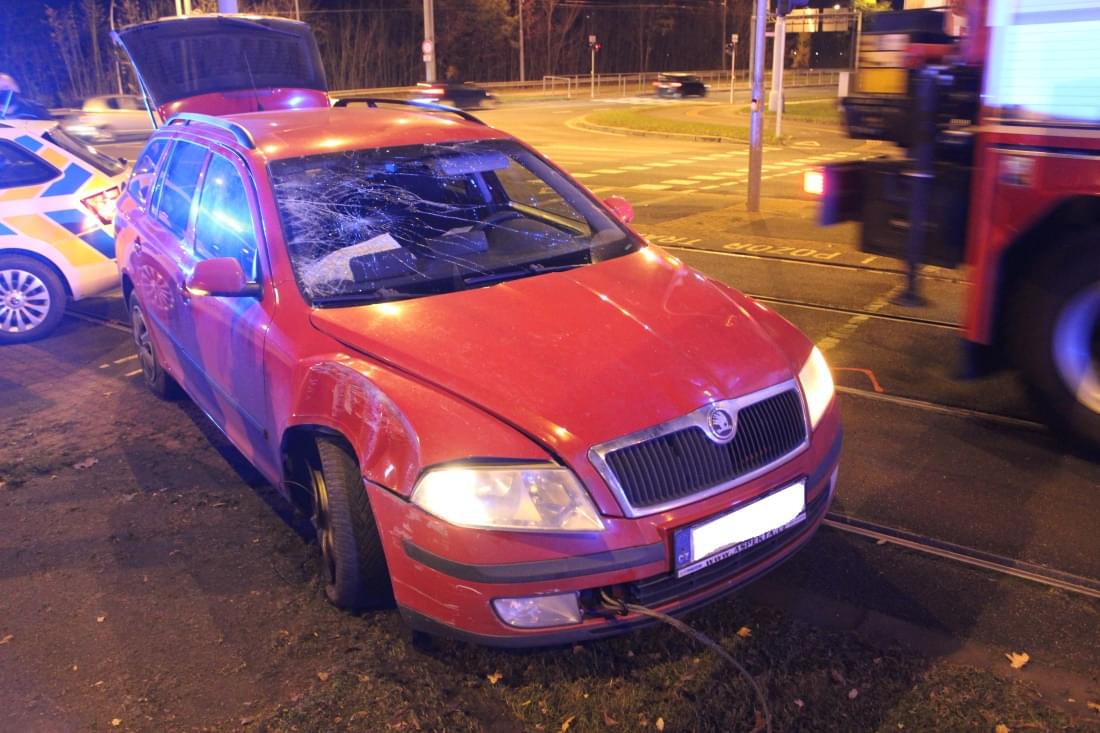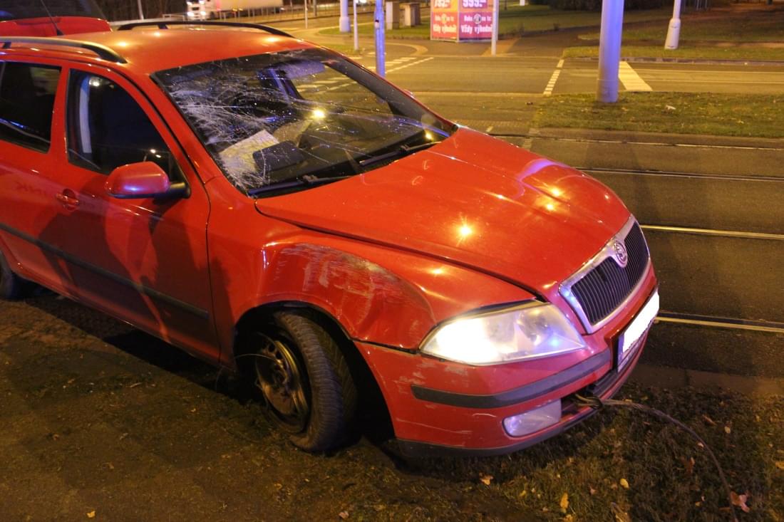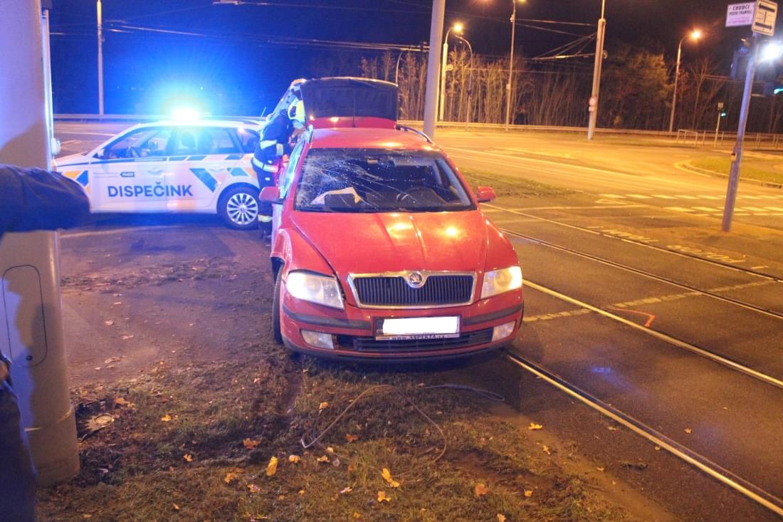 Mladá řidička s vozem Škoda Octavia jela po Karlovarské směrem od centra a při odbočování do Lidické ulice se s vozidlem dostala do smyku. Ten její vůz vynesl mimo jízdní pruh na tramvajové koleje, kde vůz havaroval do sloupu trakčního vedení.