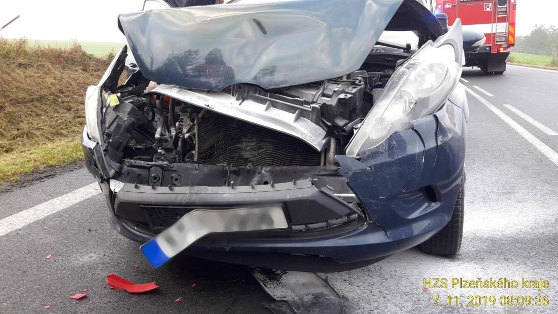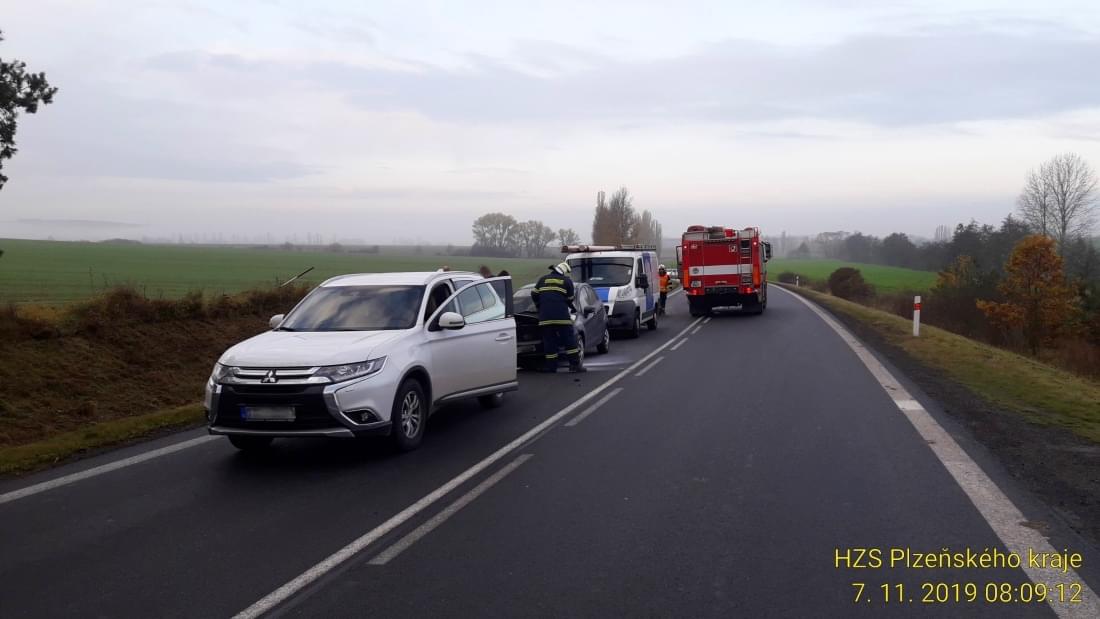 Mezi sjezdem z přivaděče na Dobřany a Dobřany došlo před osmou hodinou ráno ke střetu dvou osobních automobilů a dodávky.