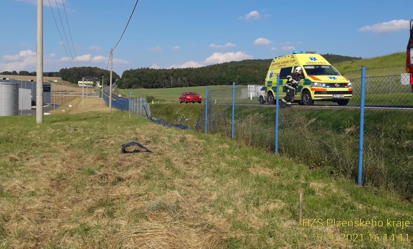 V neděli jela sedmačtyřicetiletá žena z Domažlicka s vozidlem Škoda Octavia mezi Stodem a Holýšovem. Krátce po půl čtvrté na přímém úseku silnice vjela řidička s vozidlem na pravý okraj komunikace, pak ze sinice zcela vyjela, smetla směrový sloupek, prorazila oplocení areálu společnosti Evobus a poté ještě několik metrů jela po travnaté ploše areálu.