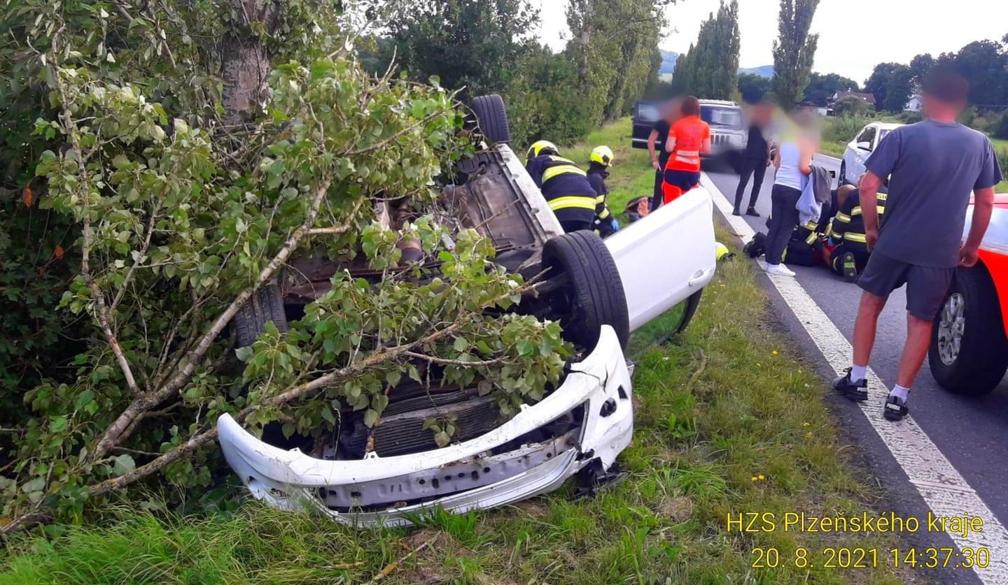 Dnes před půl třetí odpoledne došlo u Koutu na Šumavě k havárii osobního vozu Fordu Focus, který se po vyjetí ze silnice převrátil na střechu a narazil do stromu. "Řidič narozený v roce 2001 nedodržel dostatečnou bezpečnostní vzdálenost za vozidlem jedoucím před ním a když toto vozidlo muselo kvůli situaci v provozu zpomalit, nepřiměřeně ve snaze zabránit střetu zareagoval a strhl volant vpravo mimo vozovku," uvedla tisková mluvčí policie s tím, že při havárii byli ve Fordu zraněni čtyři lidé.