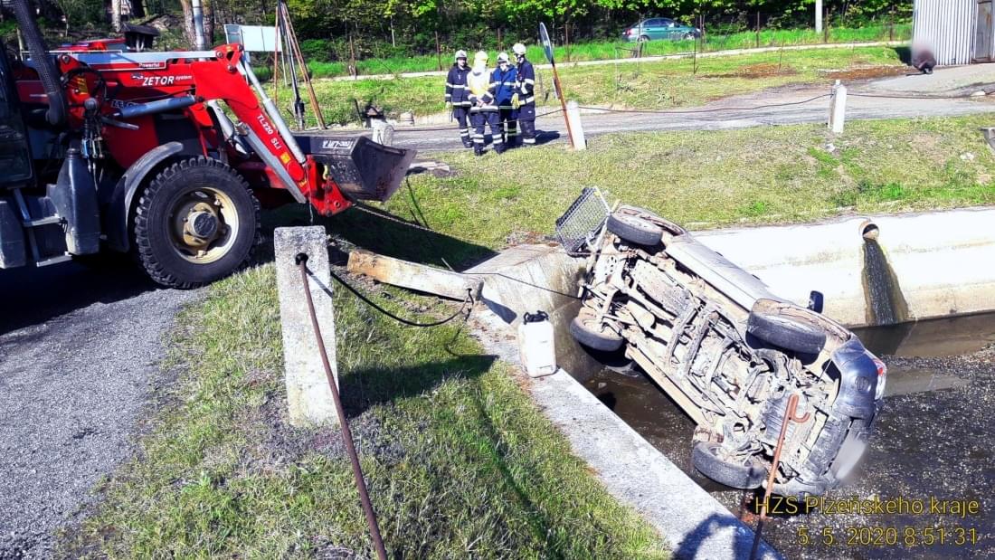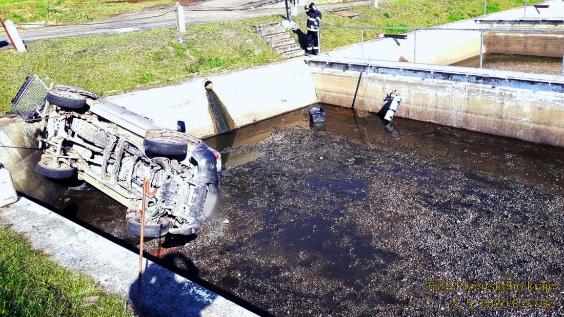 Po osmé hodině ráno pak hasiči vyjížděli k Čápskému rybníku na Rokycansku, kde z jedné z vypuštěných rybích sádek museli vyprostit havarované terénní vozidlo Nissan.
