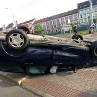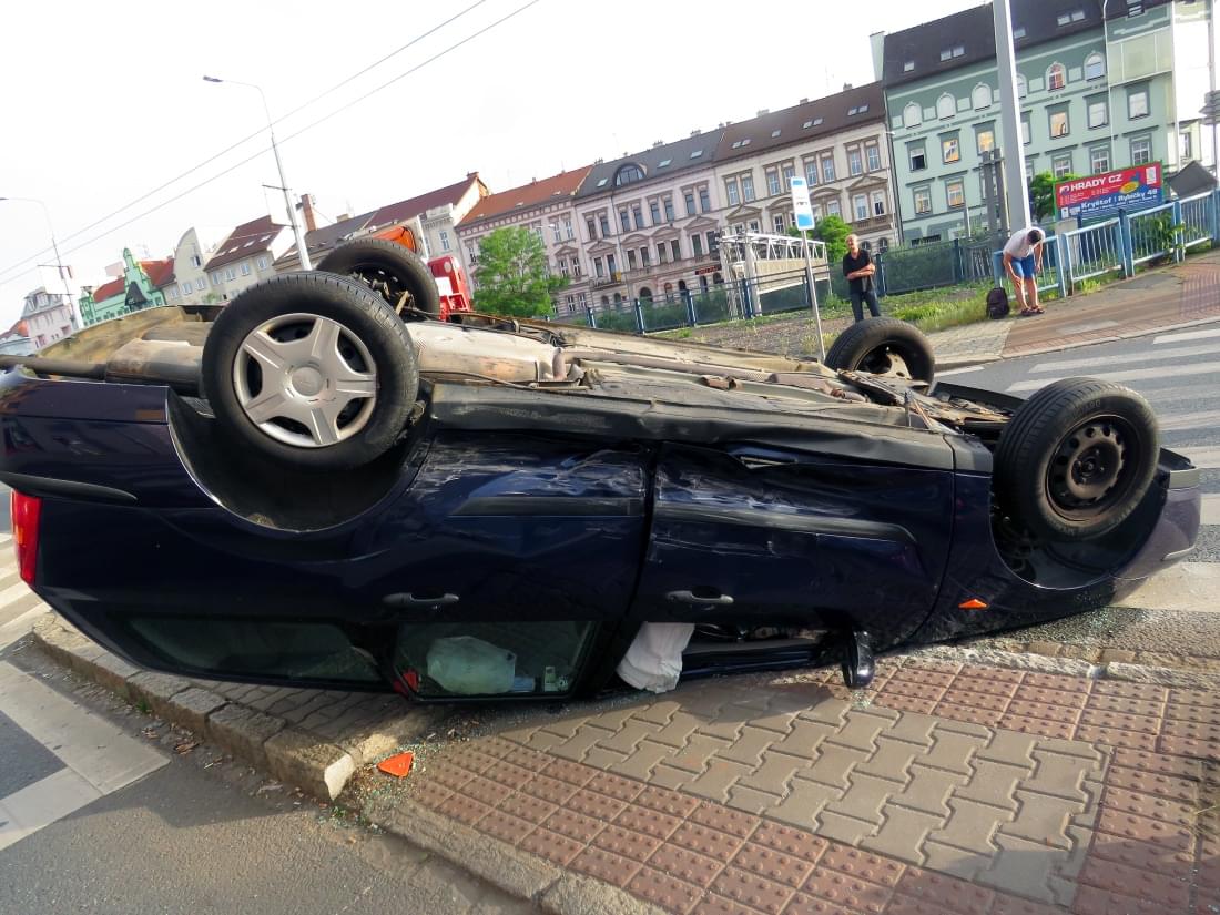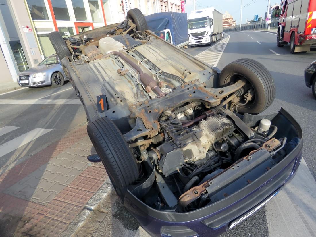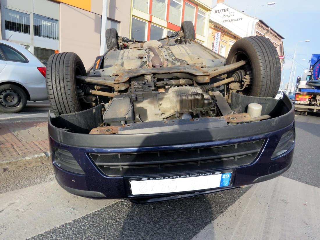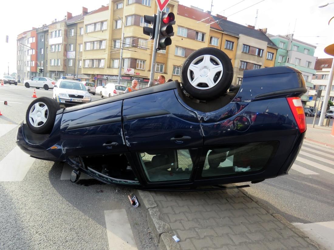 Po střetu se Ford roztočil, prolétl celou křižovatkou a o ostrůvek přechodu pro chodce v Borské ulici se převrátil na střechu.