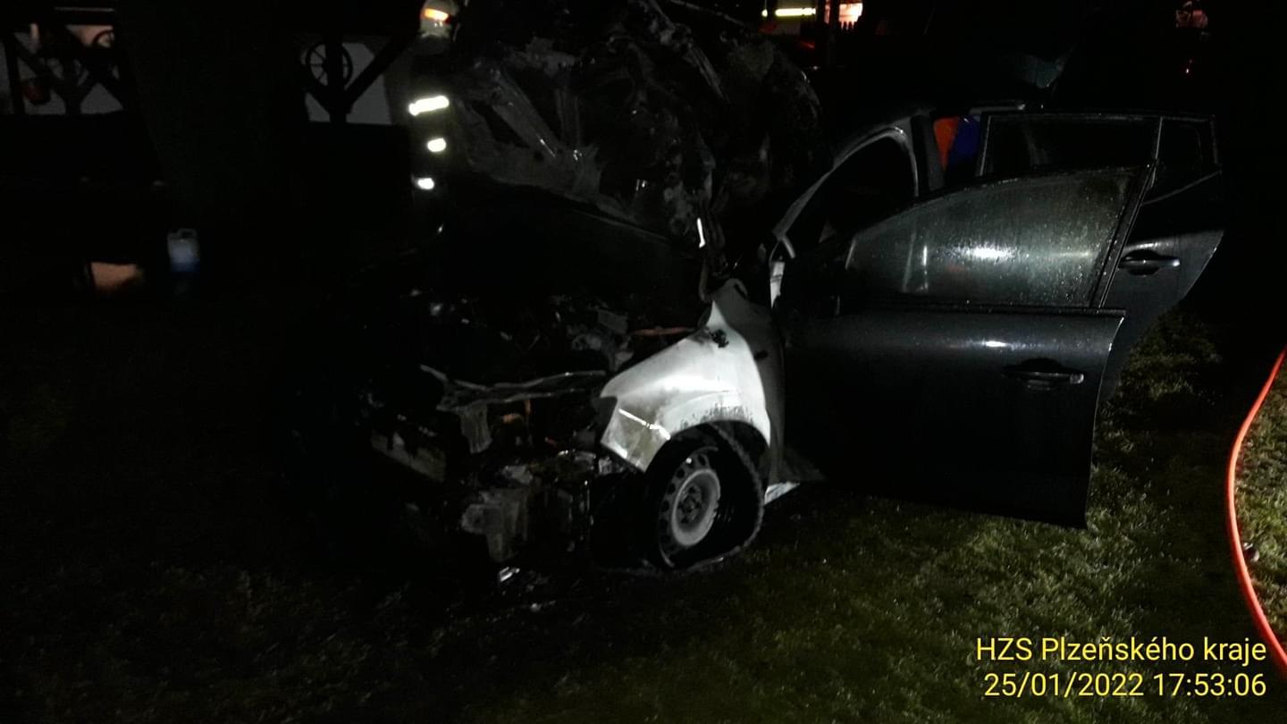 Majitel se sice snažil vůz hasit vlastními silami, bohužel ale neúspěšně a utrpěl při tom dokonce i zranění. Hasiči v krátké době po příjezdu požár lokalizovali a uhasili, zraněný muž byl předán do péče záchranářů. "Muž s popáleninou horní končetiny jsme transportovali na chirurgické oddělení nemocnice ve Stodu," uvedla tisková mluvčí záchranářů.