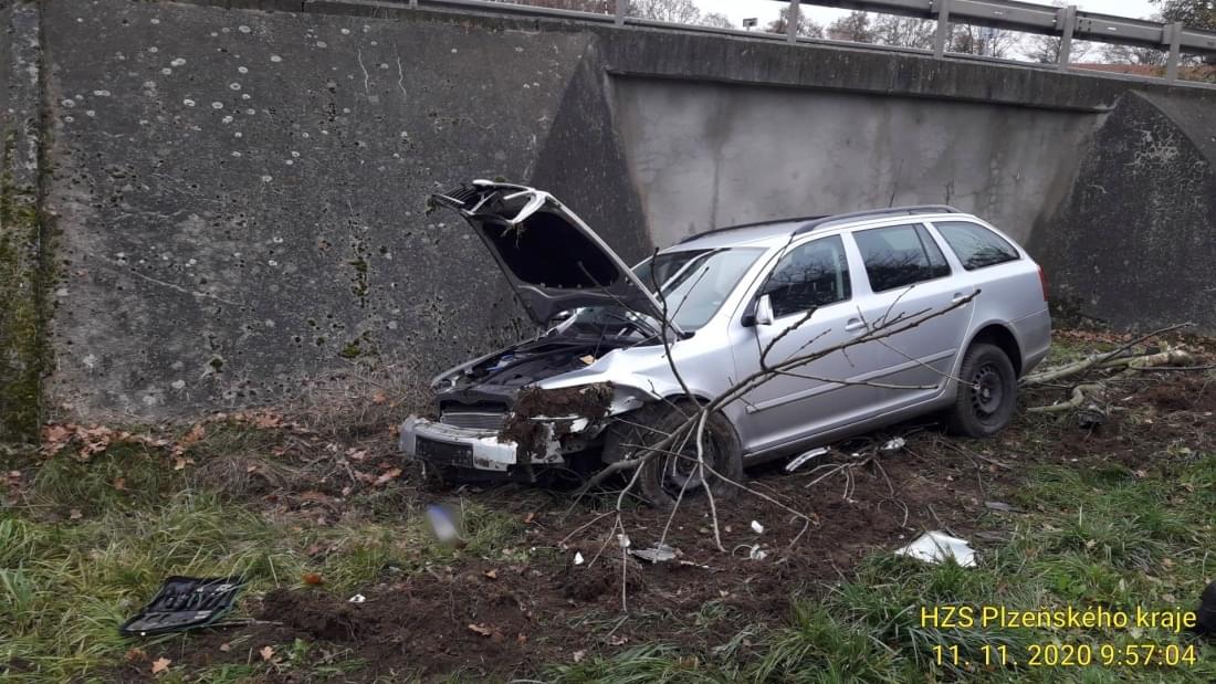 Podle tiskové mluvčí policie řidič narozený v roce 1957 jedoucí s vozidlem Škoda Octavia ve směru od Domažlic na Klatovy strhl řízení, protože mu do cesty vběhla srna.