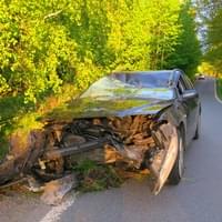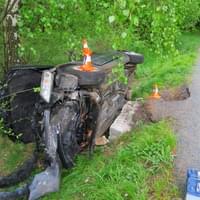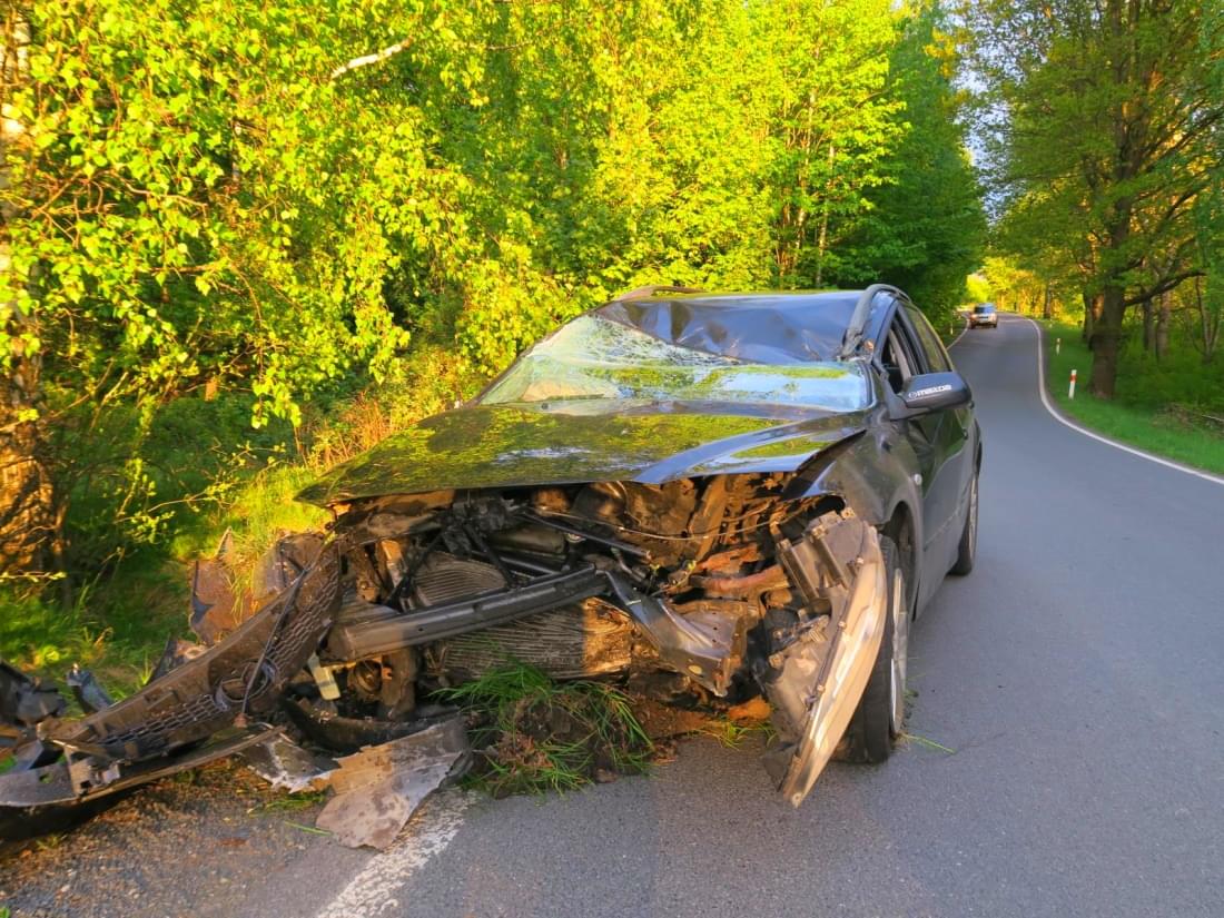 "Čtyřiačtyřicetiletý řidič osobního automobilu Mazda 6 jedoucí ve směru od obce Liščí na obec Pláně po projetí mírné pravotočivé zatáčky na přímém úseku vjel na pravý okraj komunikace a následně vyjel vpravo mimo komunikaci, kde postupně narazil do betonového můstku a kmene vzrostlého listnatého stromu," popsala tisková mluvčí policie.
