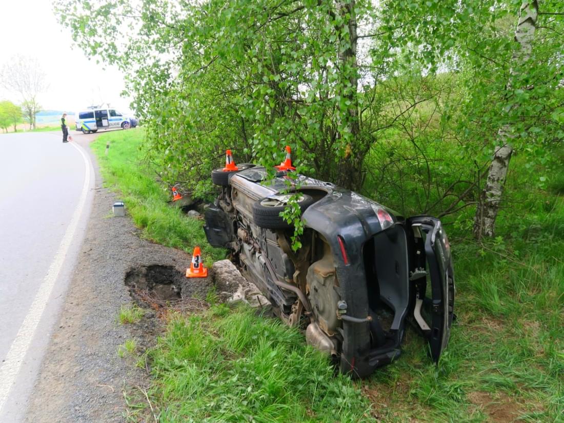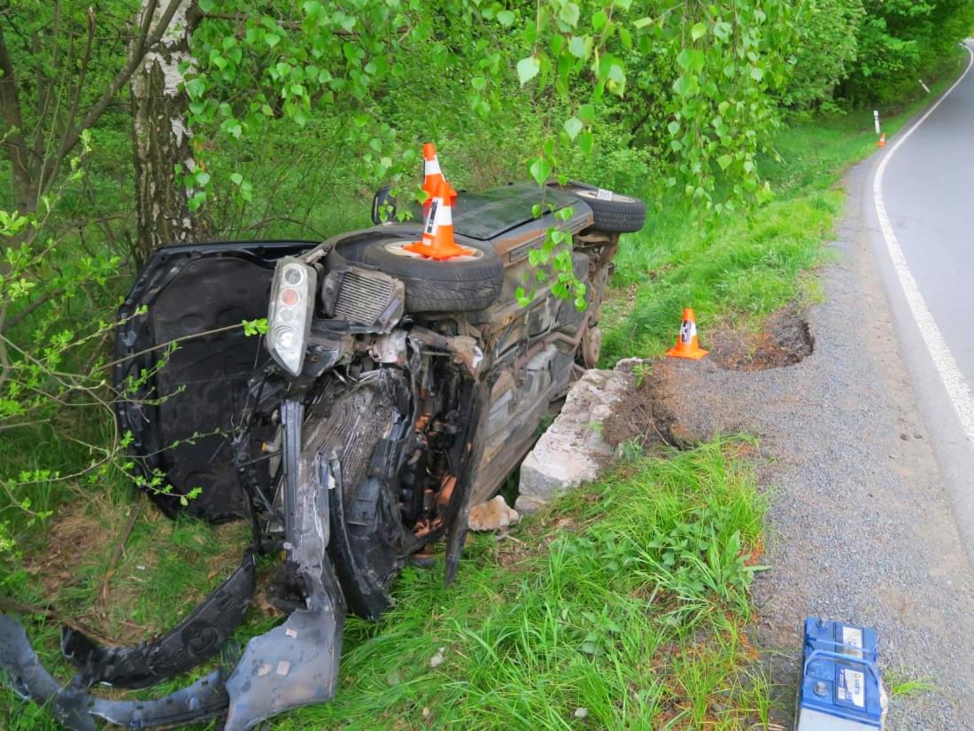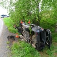 Včera v půl páté odpoledne došlo u Všerub mezi obcemi Liščí a Pláně k havárii, při které se osobní vůz převrátil do příkopu.