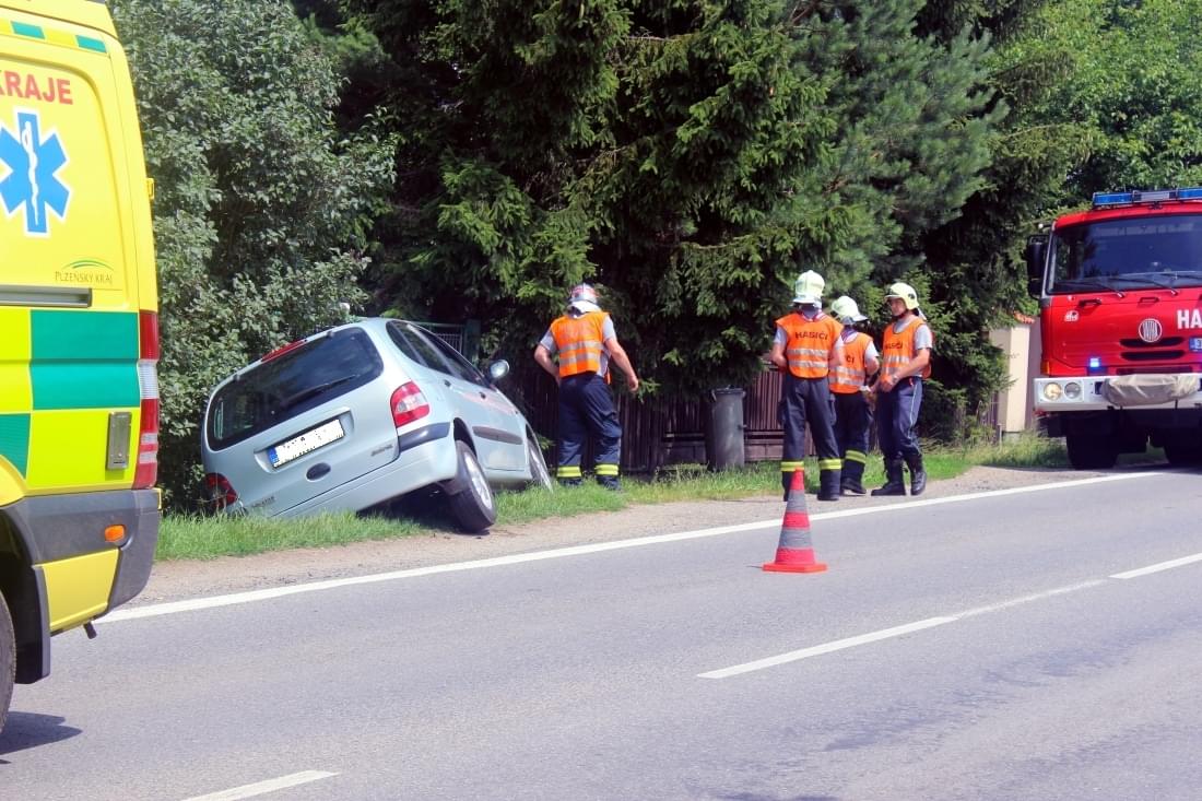 Dnes před půl druhou odpoledne došlo k nehodě vozu Renault Scenic jedoucího z Plzně do Rokycan po staré silnici. Řidiči se dle všeho udělalo za jízdy nevolno, přejel do protisměru a poté narazil vozem do betonové obruby mostku.