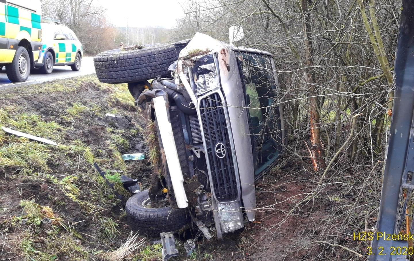 Před jedenáctou hodinou dopoledne došlo mezi Tlučnou a Vejprnicemi k havárii osobního vozu Toyota Landcruiser do příkopu. Cizinec s vozem jel ve směru na Vejprnice, v pravotočivé zatáčce dostal smyk a havaroval mimo silnici. Hasiči muži pomohli z vozu a následně si ho do péče převzali záchranáři.