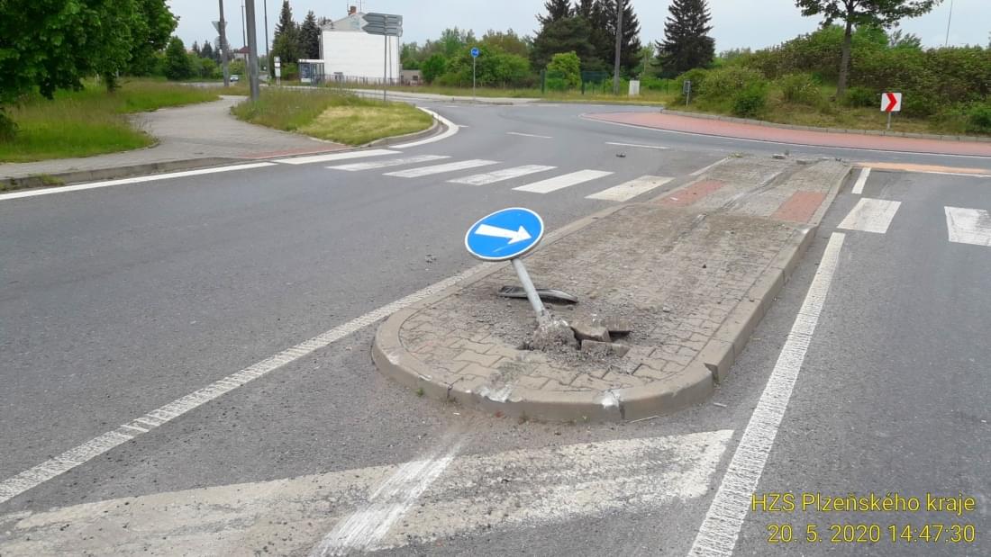 Jen o půl hodiny později havaroval řidič s vozem Škoda Felicia na kruhovém objezdu mezi Černicemi a Štěnovicemi. Vůz zde havaroval do ostrůvku, přičemž skácel dopravní značku. Tato nehoda se podle prvotních informací naštěstí obešla bez zranění, hasiči ale museli pomocí sorbentu zlikvidovat unikající benzín.