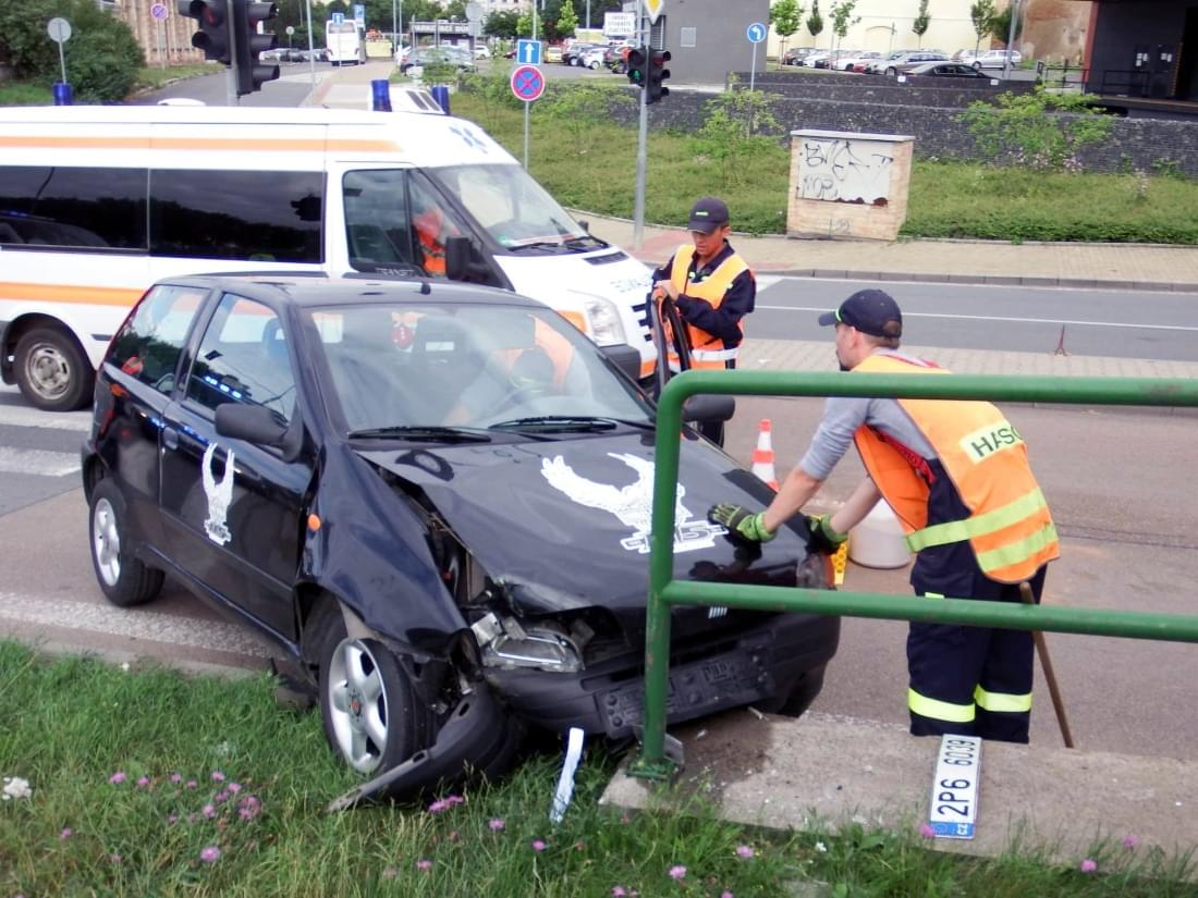 K další dopravní nehodě došlo jen o několik minut později v Jízdecké ulici, kde mladý řidič s vozem Fiat jedoucí směrem na Palackého náměstí vyjel vpravo mimo vozovku a narazil do zábradlí.