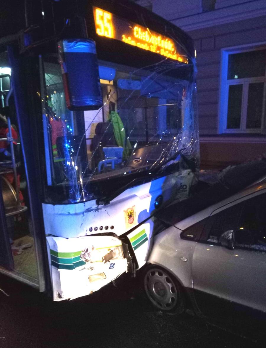 V noci z úterý na středu kolem půl jedenácté došlo v Chebu k nepochopitelné hromadné dopravní nehodě. Sedmdesátiletý řidič autobusu ČSAD Karlovy Vary a. s. linky č. 55 nejprve nedokázal vyjet z autobusového nádraží, narazil do zdi, vycouval, znovu se rozjel a opět boural, a teprve na třetí pokus nádraží opustil, ale tím teprve vše začalo.
