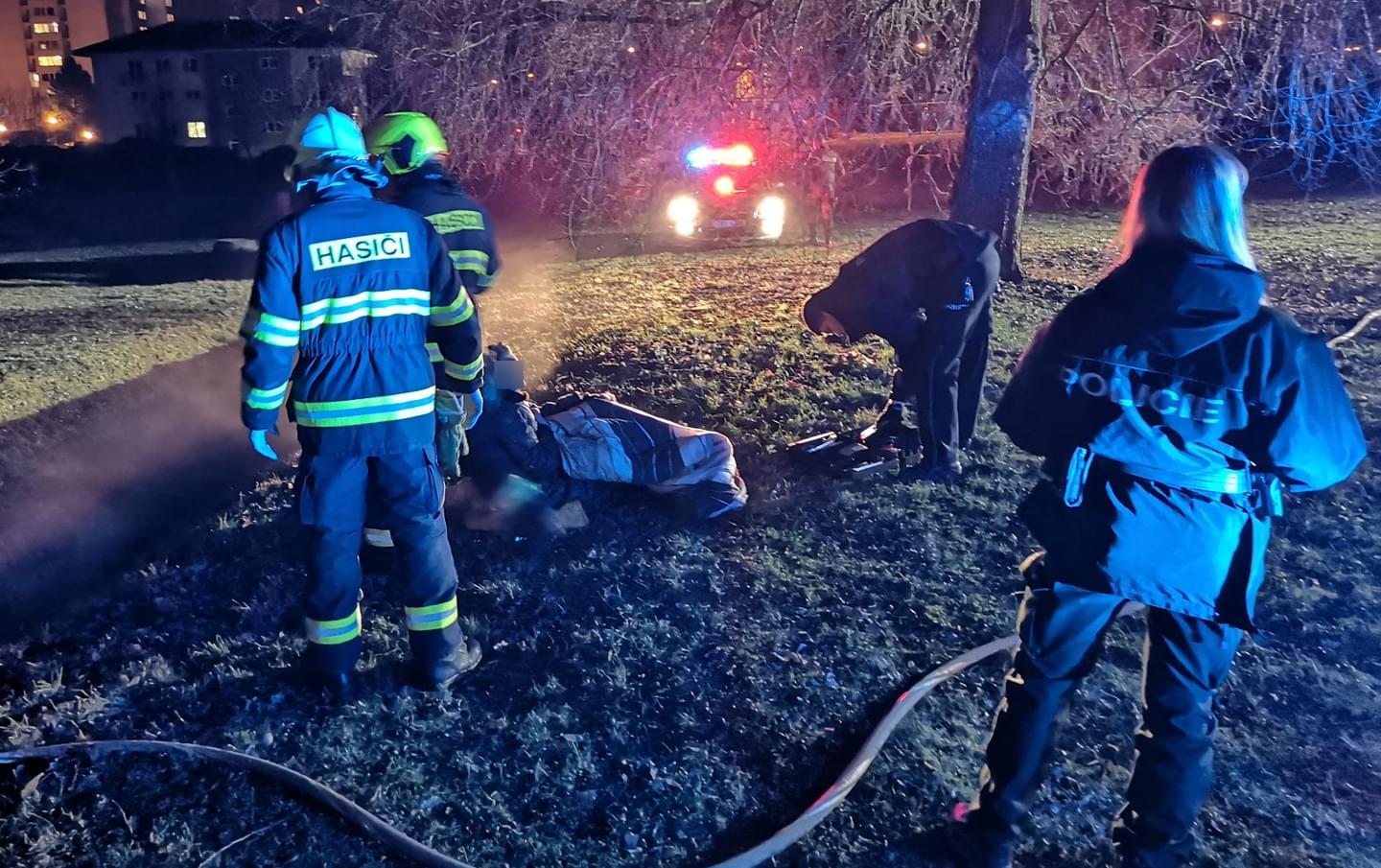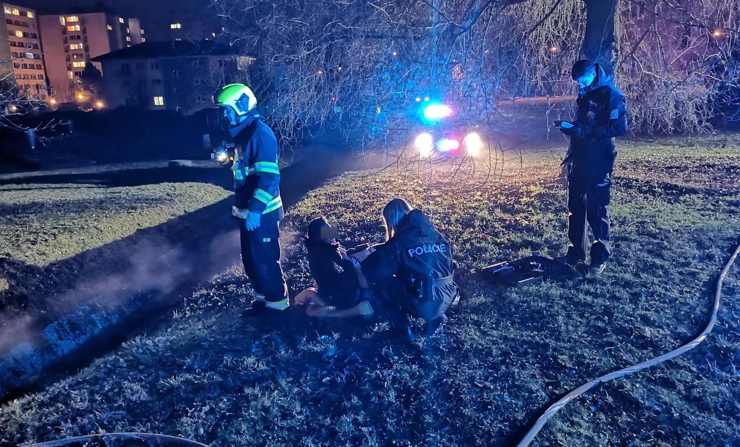 Zatímco záchranáři ošetřovali zraněné, hasiči uhasili hořící lůžkoviny v rouře pomocí vysokotlakého proudu. Policistům mezitím třetí muž popsal, že procházel okolo místa, kde věděl, že v rouře bydlí dva bezdomovci, viděl plameny i kouř, a když pak zaslechl křik z roury, vlezl dovnitř a oba zraněné tahal ven. Záchranné složky pak přivolali dva náhodně procházející mladíci.