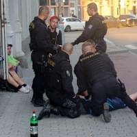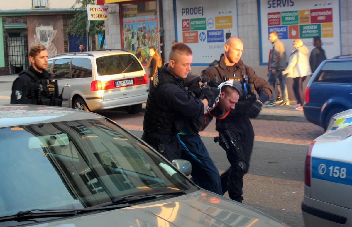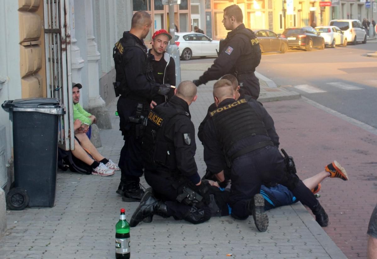 Jeden z mužů, dle řeči zřejmě Slovák, ale nedbal opakovaných výzev policistů a dál byl agresivní na ostatní muže i na policisty samotné. Ti ho pak museli svést na zem a protože ani tam se neuklidnil, nasadit i pouta. Ostatní muži nejen, že s policisty spolupracovali a dokonce svého kamaráda vyzývali, aby se uklidnil, ale i nám pak řekli, že neví co ho to popadlo, a že je to vůl, který se tak chová často.