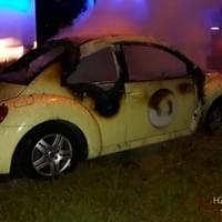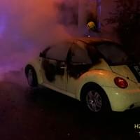 Dnes po půl šesté ráno vyjížděli hasiči k požáru osobního vozu New Beetle do Révové ulice v Plzni Doudlevcích.