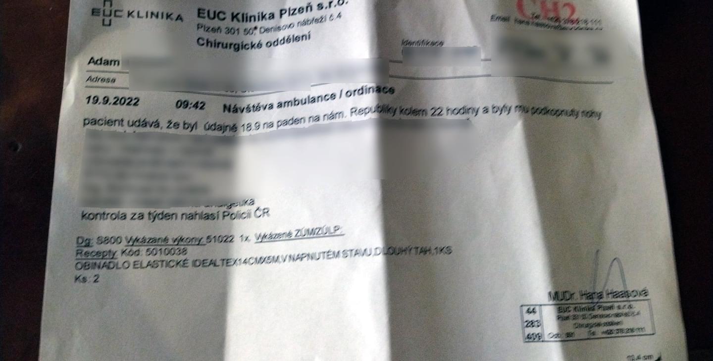 Podle rodiny musel Adam vyhledat lékařské ošetření a nyní je v pracovní neschopnosti. Na rozbitých speciálních brýlích a telefonu mu navíc vznikla škoda téměř dvacet tisíc korun.