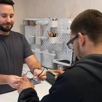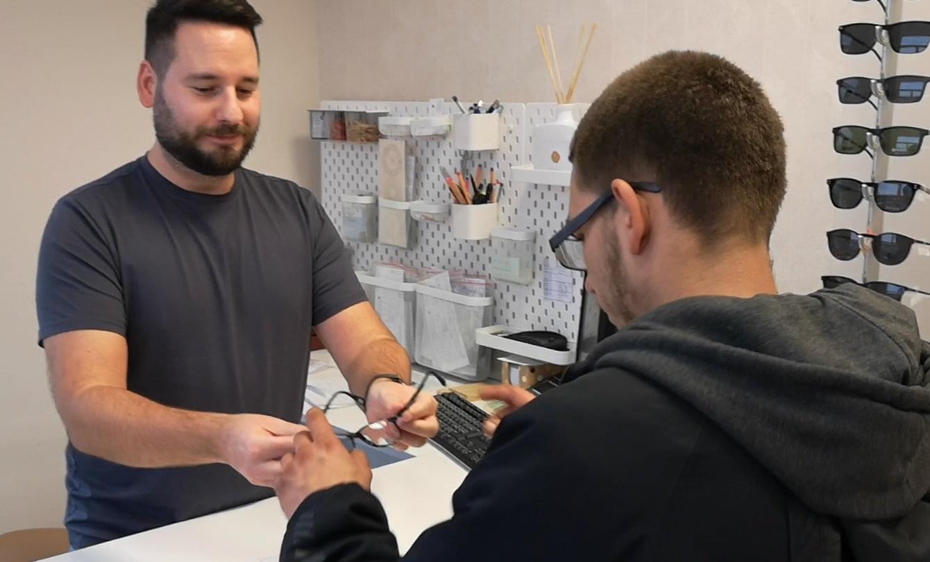 Poté si Adam vybral vyhovující rám brýlí a nakonec ještě proběhlo odborné měření k přesnému doladění všech zbývajících parametrů.