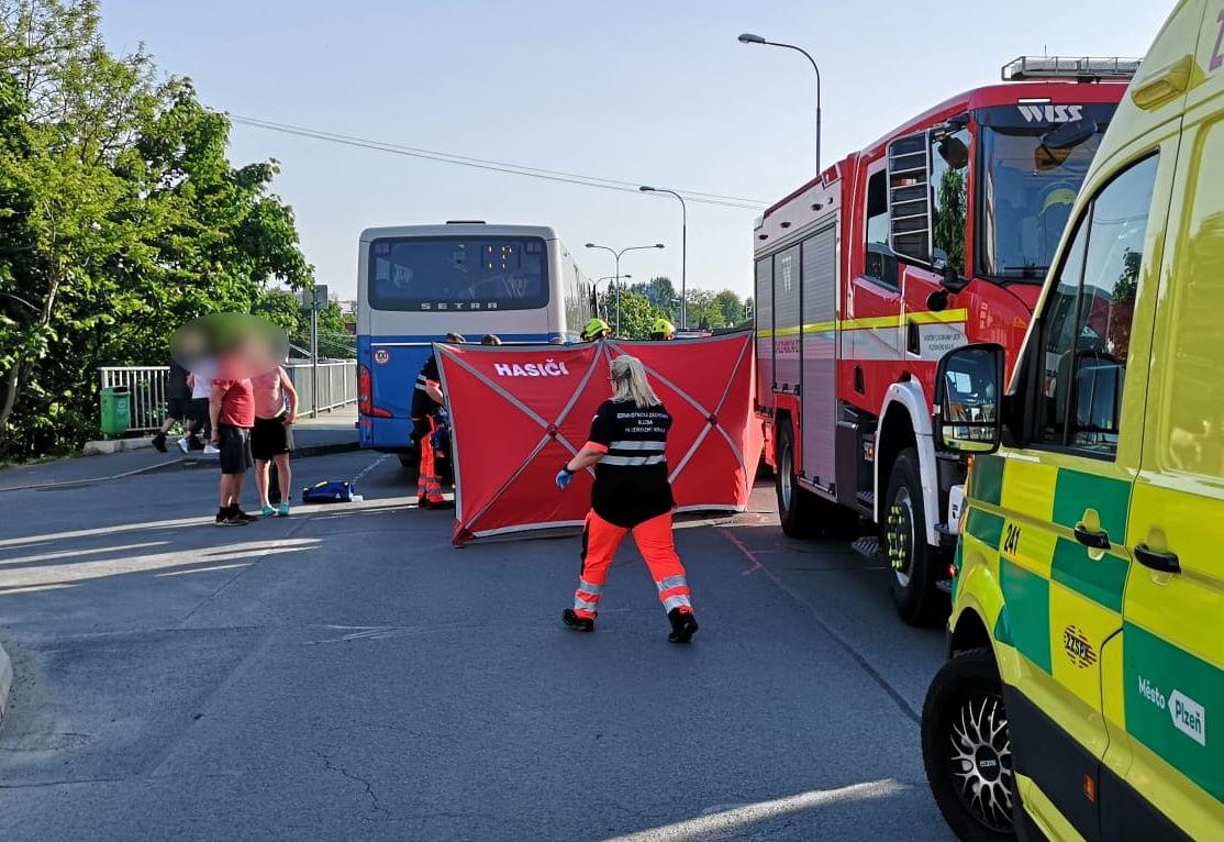 K další dnešní velmi vážné dopravní nehodě došlo v šest hodin odpoledne v Plzni Božkově. Podle prvotních informací zde asi padesátiletá cyklistka jela směrem do centra Plzně, a když ji před mostem přes Úslavu předjížděl autobus, žena měla náhle odbočit vlevo, takže ji autobus srazil bokem a přejel zadním kolem.